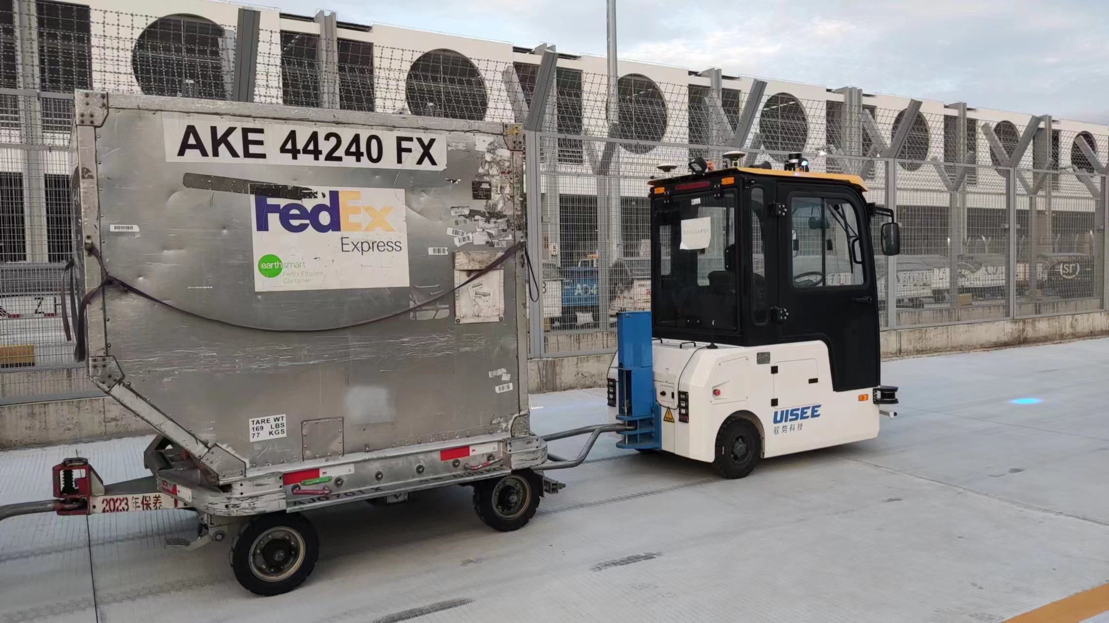 在快件处理中,智能化的驳运系统实现了更高效、更安全、更可靠的货物转运。智能化驳运系统的核心是一台无人驾驶牵引车,负责深圳机场快件中心园区内2号库至7号库的货物转运,可实现无人接驳7*24小时不间断作业,在提升了货物转运效率的同时,有效降低人为操作错误和事故发生率。