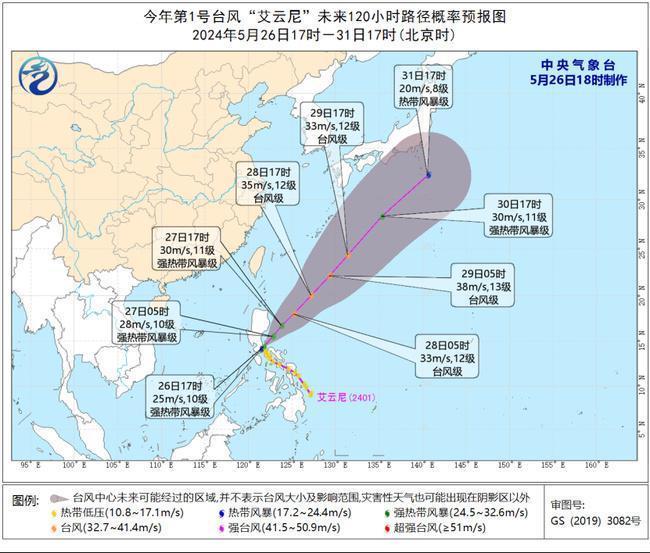 预计,“艾云尼”将以每小时10—15公里的速度向东北方向移动,强度逐渐加强。27日前后在菲律宾吕宋岛以东洋面转向东北方向移动,预计对广东陆地及海面无直接影响。