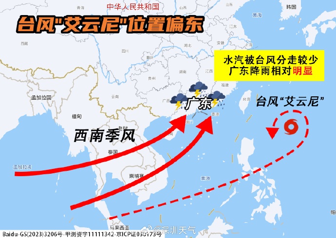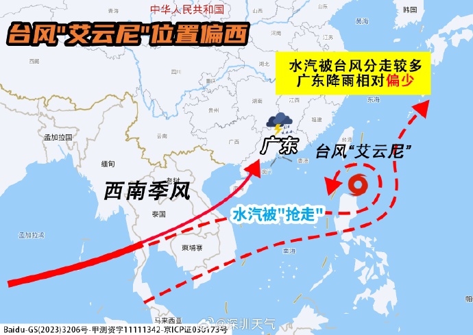 如果“艾云尼”接下来的位置比预计偏西,其将抢走部分西南季风的水汽,这周初广东的降雨就会相对偏弱。