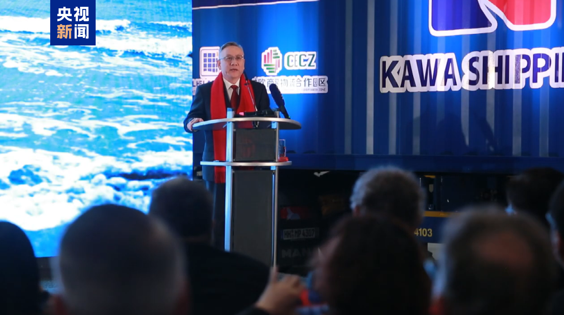 当地时间1月24日,“中欧快航”接船仪式在德国北部威廉港物流园区举行,标志着连通中国长三角地区与德国唯一深水港的“中欧快航”直达航线成功完成首航。中国驻汉堡总领事丛武、德国下萨克森州经济部国务秘书弗兰克·杜兹、威廉港市市长卡斯滕·费斯特(Carsten Feist)等中德各界人士260余人出席仪式。