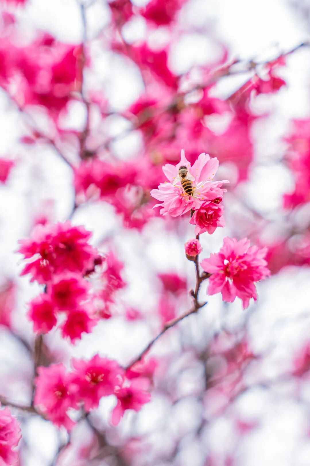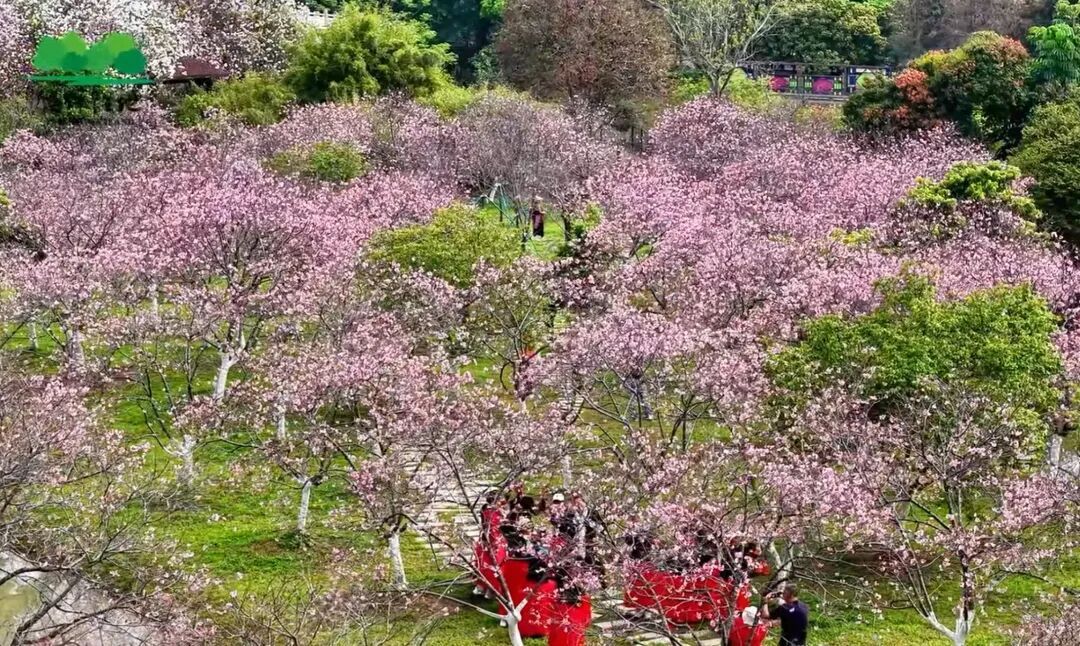 宝墨园的樱花主要有广州樱、中国红两大本土自主培育的品种 ,中国红花期较早,目前已率先绽放。