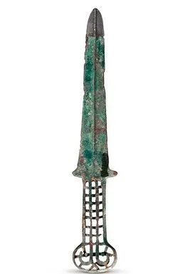 镂孔柄铜匕首,战国。来源/河北省博物馆