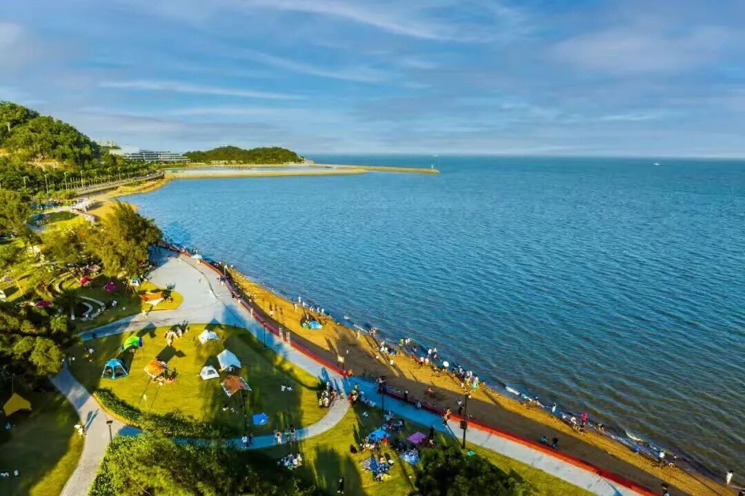 公园将最美风景带设为露营区,周末带上家人朋友,搭一顶帐篷、摆上野餐垫,吹着海风享用美食,或是在沙滩上挖沙、堆城堡,解锁亲子时光;傍晚时分,夕阳洒满海面,更是浪漫值拉满。