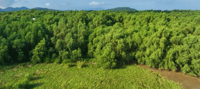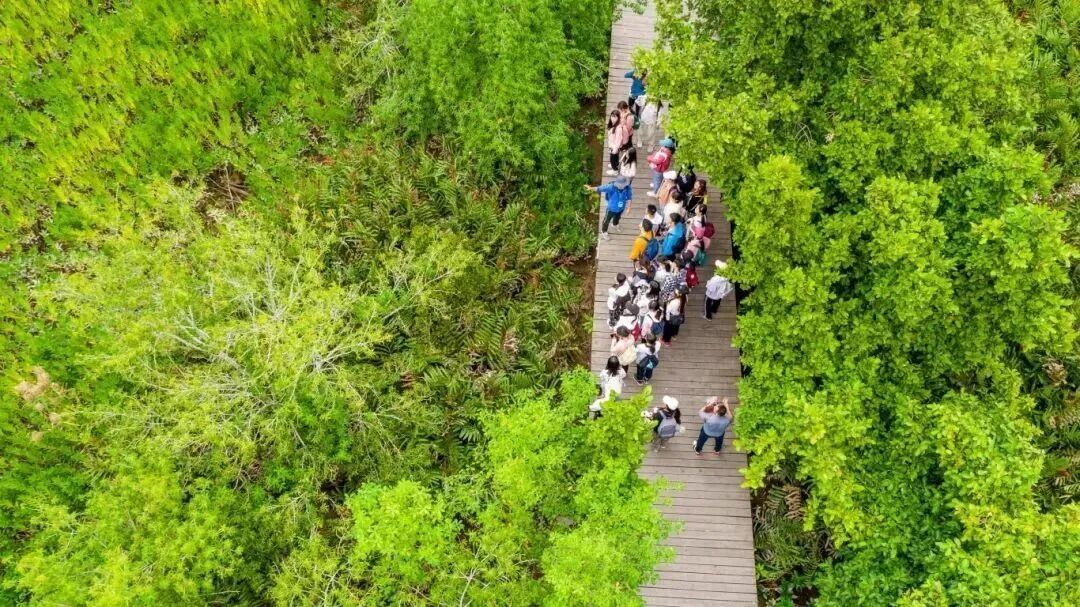 这里总面积达5103.77公顷,茂密的红树林像一片绿色海洋,沿着林荫道走进保护区,两侧的黄槿、银叶树等半红树植物遮天蔽日。