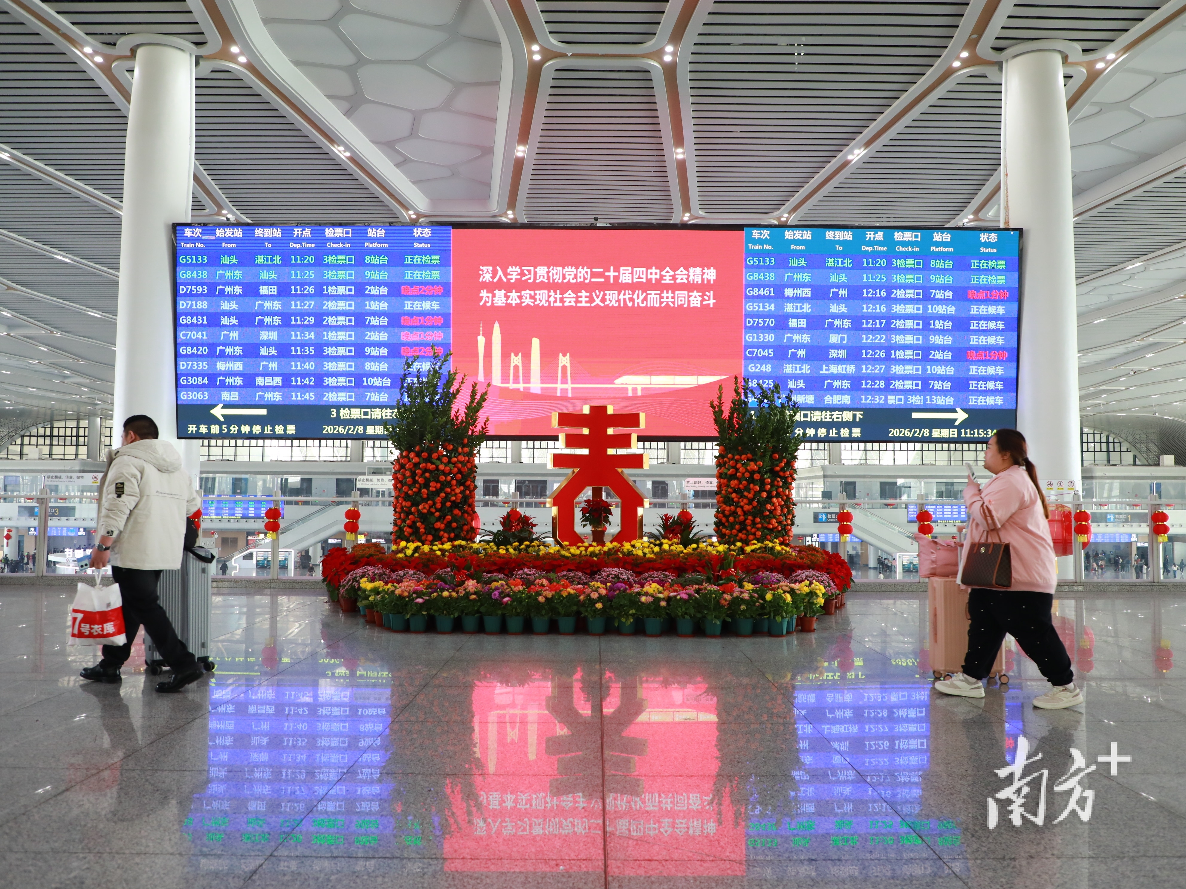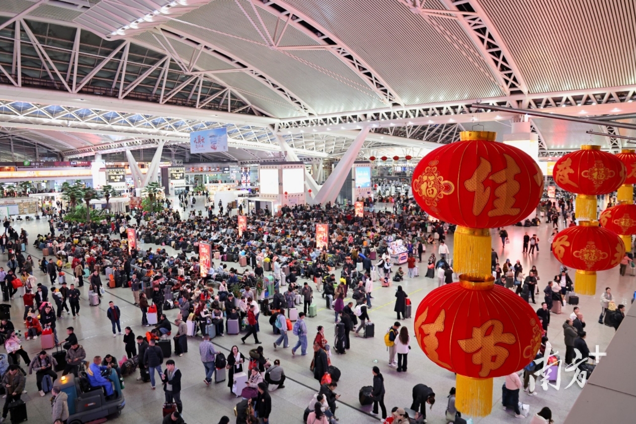 随着春节假期进入尾声,探亲流、务工流、旅游流高度叠加,国铁广州局2月23日迎来春运返程客流最高峰,广东各大火车站返程客流持续高位运行,当日到达旅客突破209.8万人次。其中,广州南站到达46.6万人次,广州白云站到达17.7万人次,深圳北站到达44.1万人次。