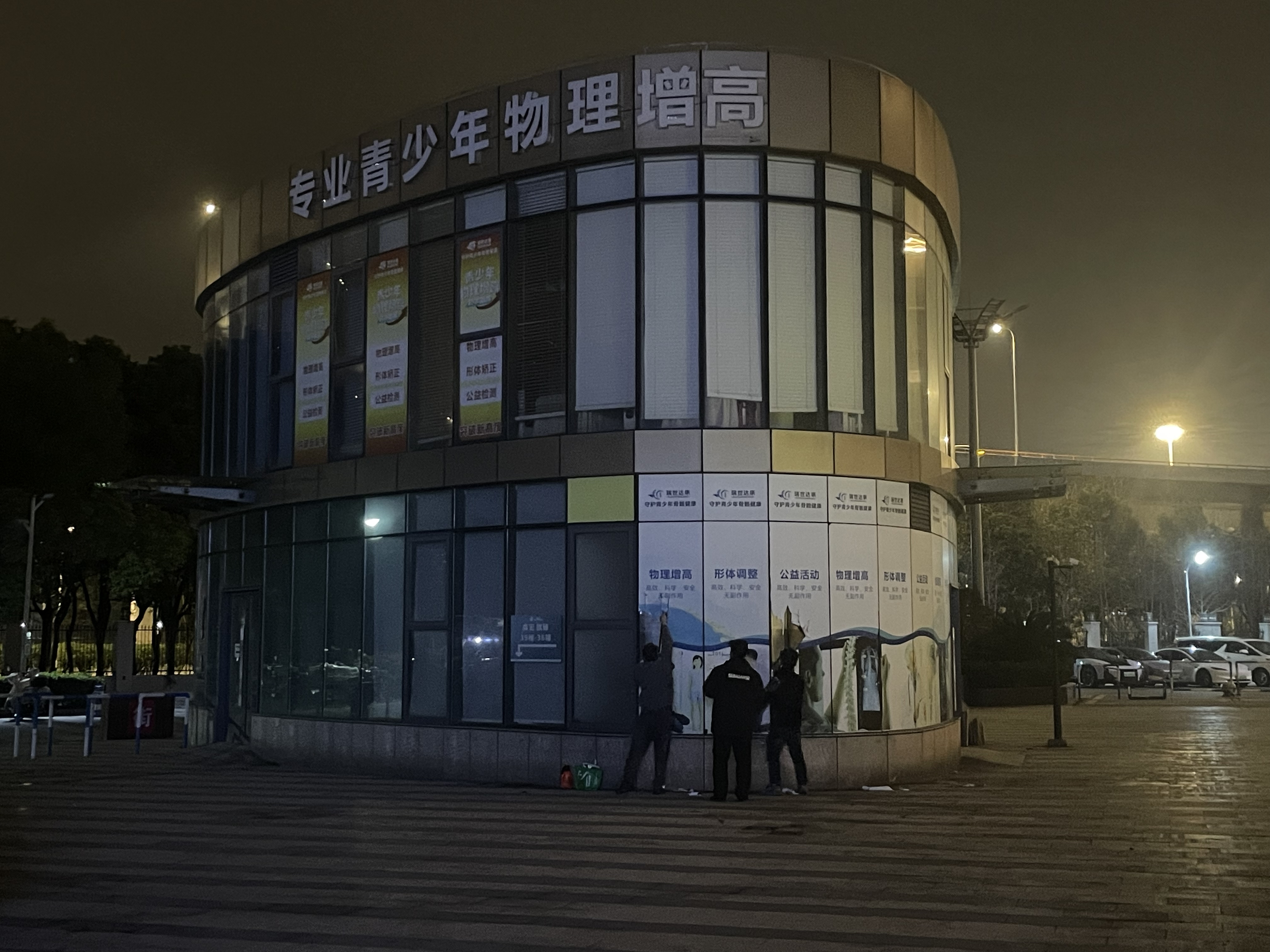 3月15日晚,南方+记者探访德脊瑞上海总部看到,这是一栋独立的两层小楼,墙面挂有两家物理增高机构的招牌,一楼玻璃墙上贴着另外一家增高机构的广告纸。节目播出后,已有人在现场清理广告纸。现场清理的工作人员称,物业方面通知其清理,清理内容包括广告纸和招牌。