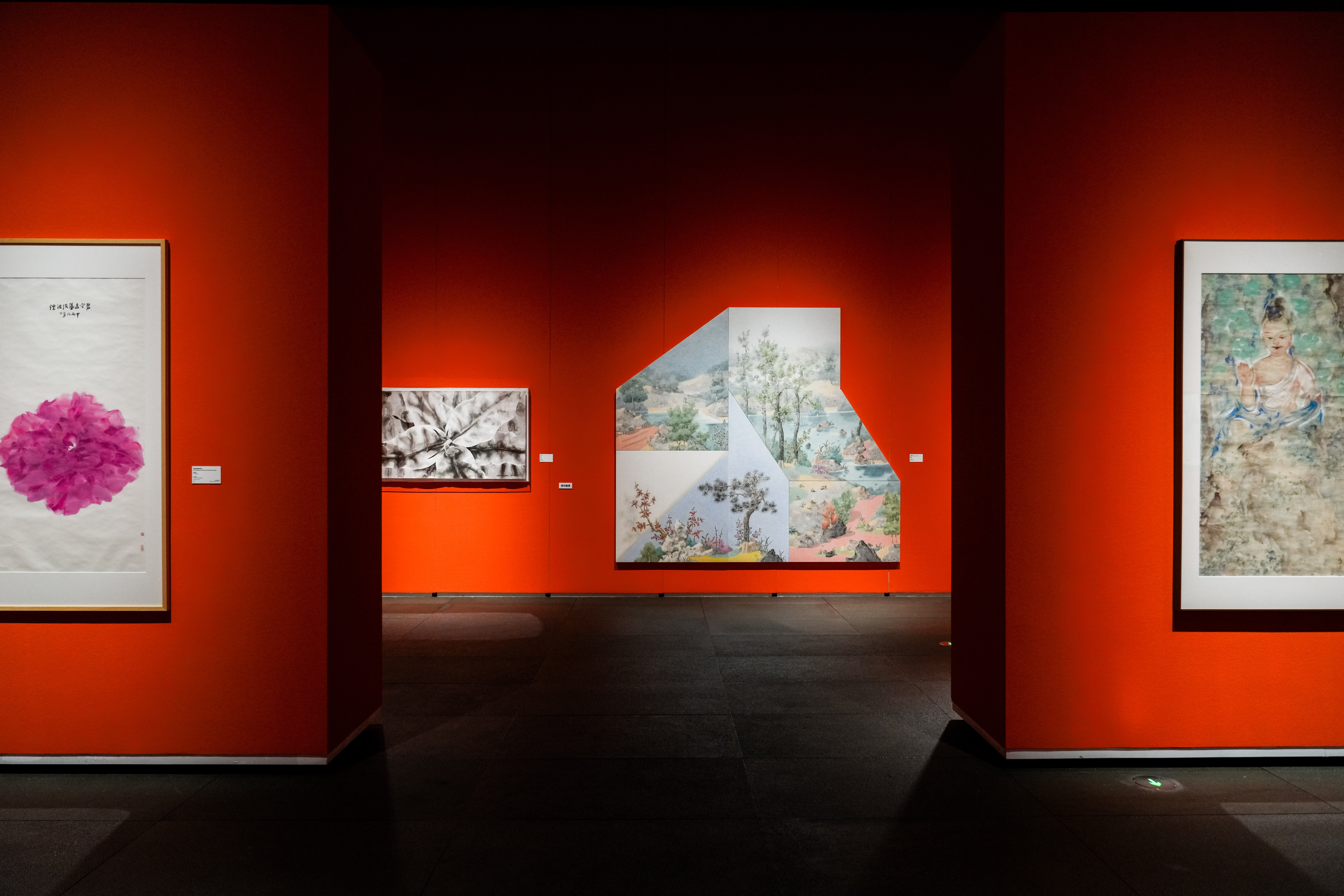 在作品选择上,策展人从近二十年馆藏中精挑细选,并特邀部分艺术家新作,最终形成了五十件(组)的呈现规模。这里没有按画种或风格机械分类,而是让新写意、新工笔、抽象水墨、跨界表达在同一空间中彼此对话。观众可以看到老一辈画家如何在传统根基上开拓新境,也能感受到中青年一代如何在跨媒介实验中延续东方美学。捷克艺术家伊瑞的参展,更提示着水墨早已超越国界,成为全球语境下可交流的文化符号。