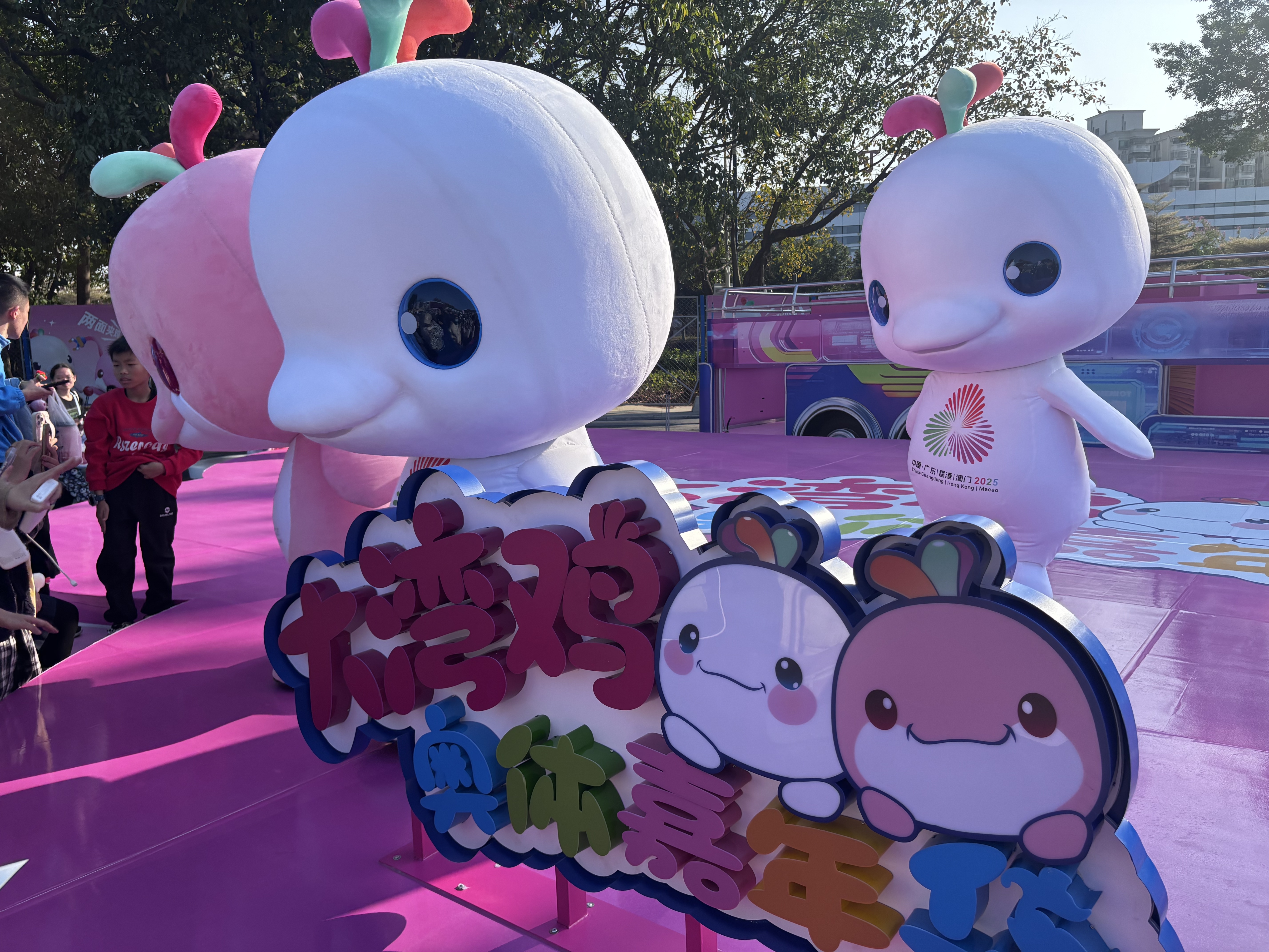 园区内,“大湾鸡”人偶将全天候驻场互动,通过萌趣表演、合影打卡等形式拉近与市民游客的距离,让“湾区萌主”真正走近群众身边。