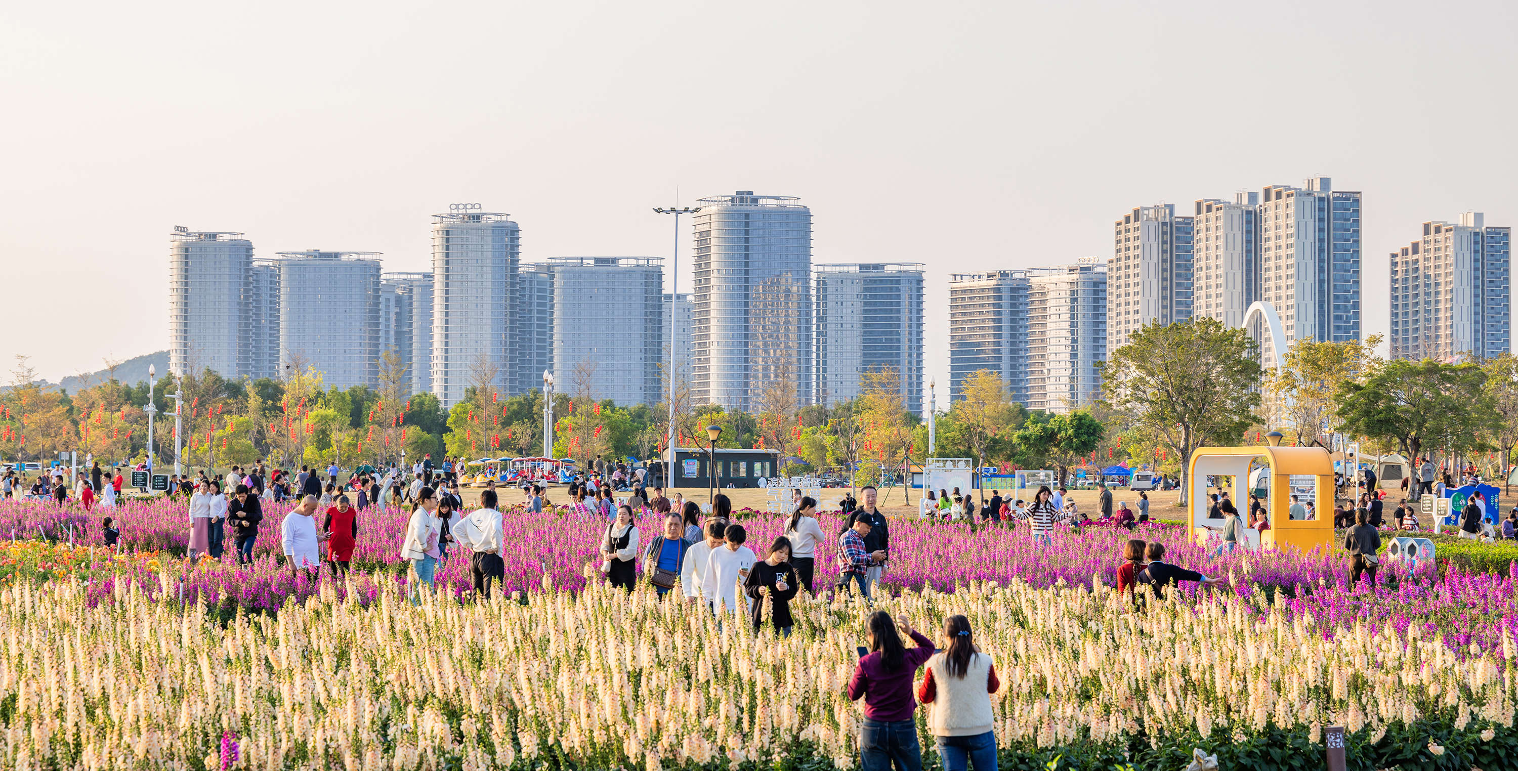 “滨海湾·花海里”花卉公园也迎来如织的人潮