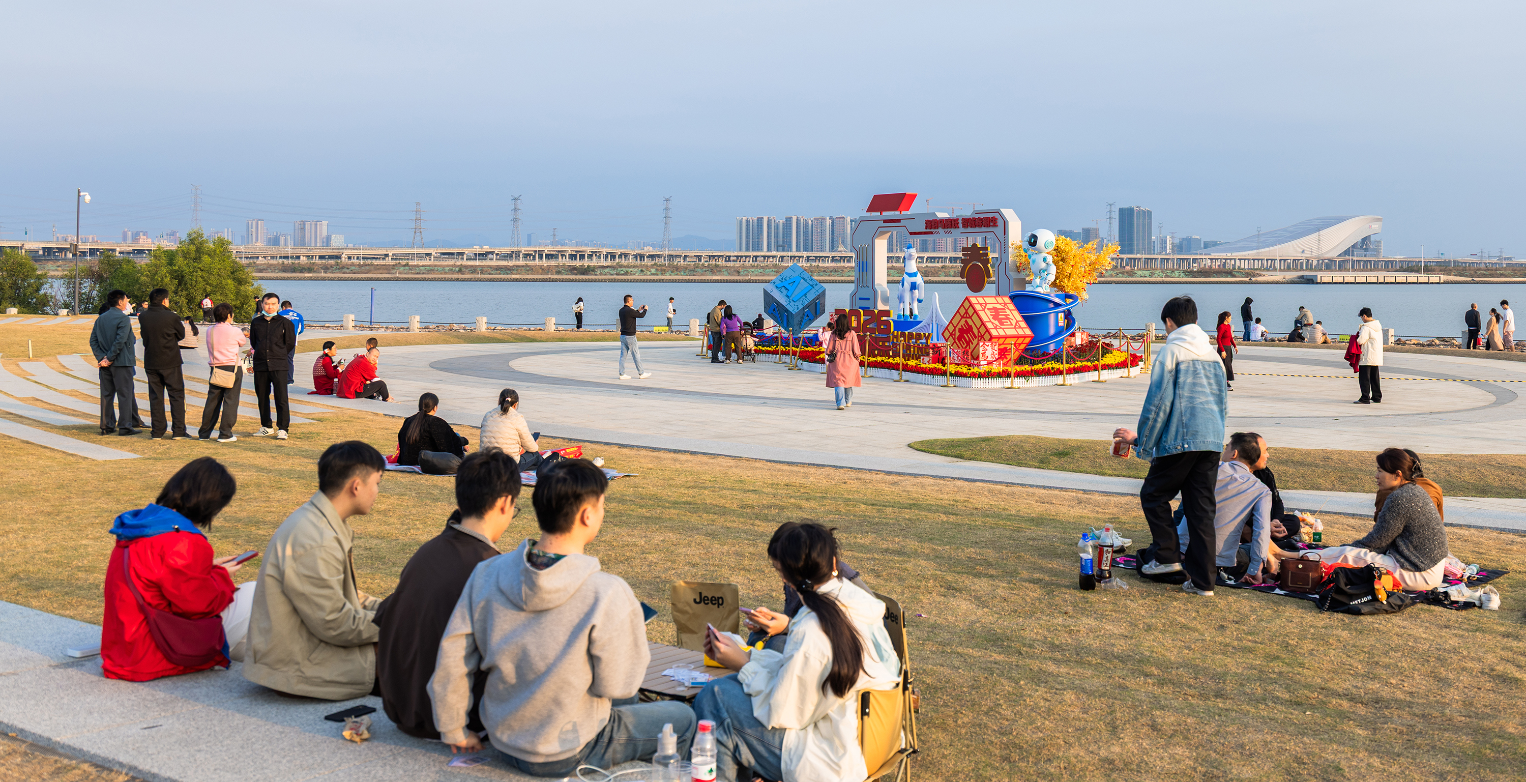 慧眼桥、大草坪上“长”满了人