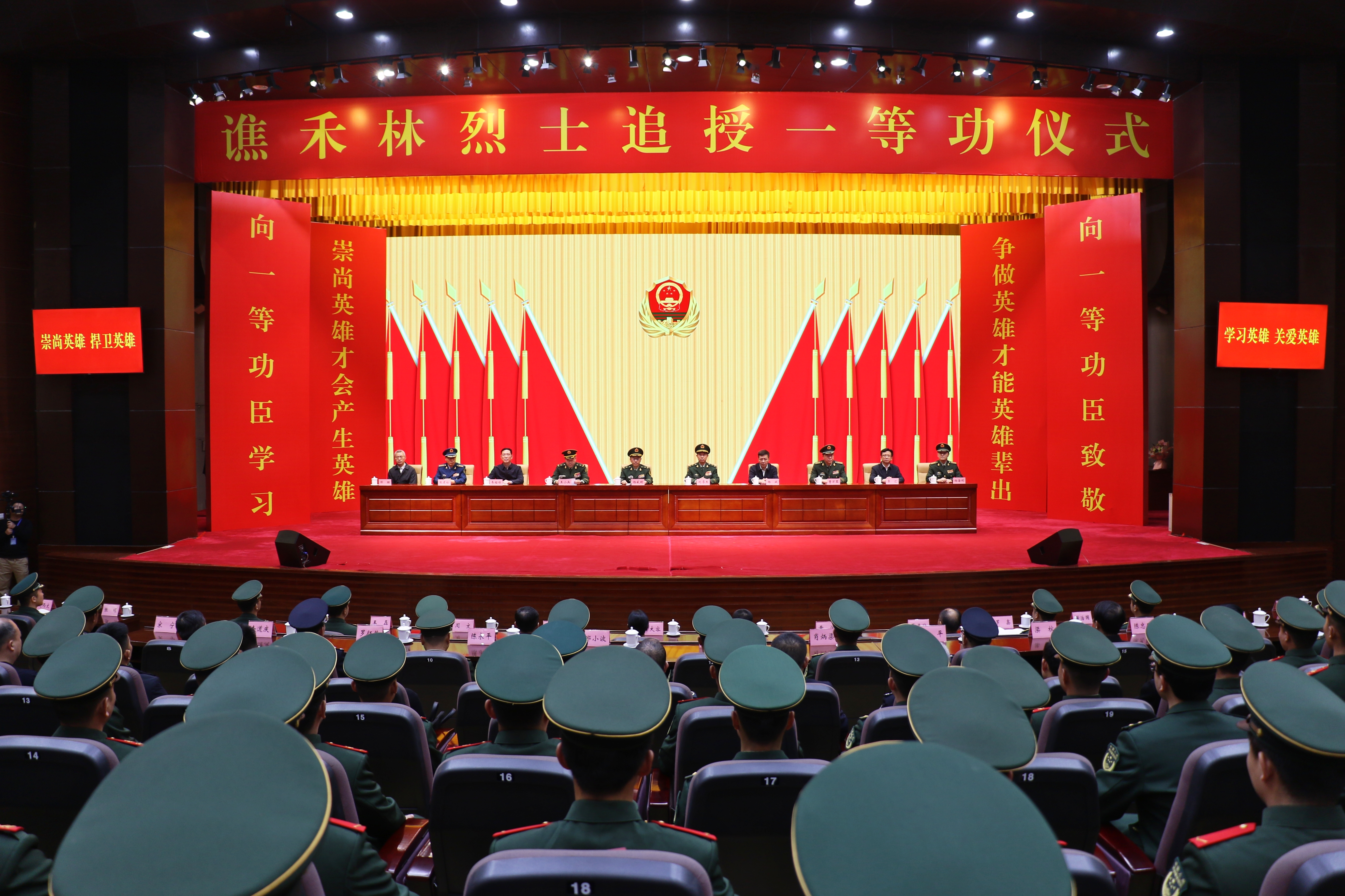 仪式现场,全体人员脱帽默哀。仪式上,宣读了《关于给谯禾林同志追记一等功的通令》和烈士评定批复,向谯禾林烈士父母颁发荣誉奖章证书,高度褒扬谯禾林烈士的英雄壮举,对进一步学习英雄事迹、弘扬英雄精神、有效履行使命提出了殷切期望。