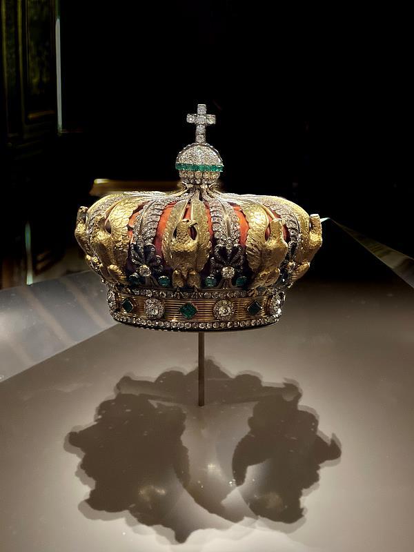 公告援引一份初步评估报告称,皇冠可能是从展柜豁口被强行取出时受到挤压,随后又遭猛烈撞击而使框架变形。原皇冠上有8只金鹰饰件和8组钻石与祖母绿构成的棕榈叶饰件交替排列,目前缺失1只金鹰饰件和约10颗底座周缘小钻。