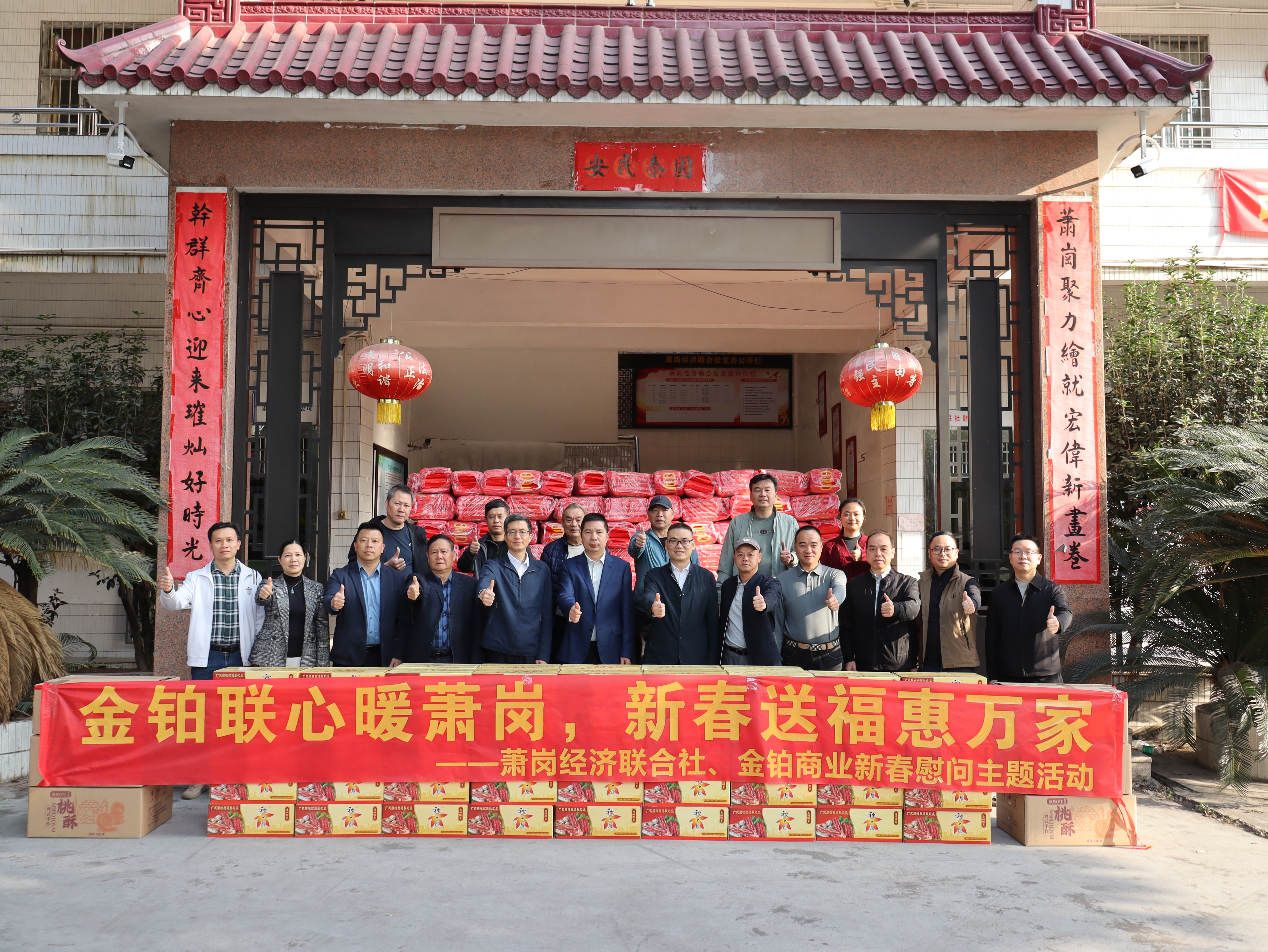 在新春佳节来临之际,为传递温暖与关怀,营造喜庆祥和的节日氛围,1月29日上午,萧岗经济联合社携手新晋合作伙伴金铂商业,共同开展“金铂联心暖萧岗,新春送福惠万家”新春慰问主题活动。向萧岗联社4875名社员送上春节问候和慰问大礼包,以传递联社、企业对长者的尊敬以及对全体社员的关怀,本次节日礼品由金铂商业倾情提供。