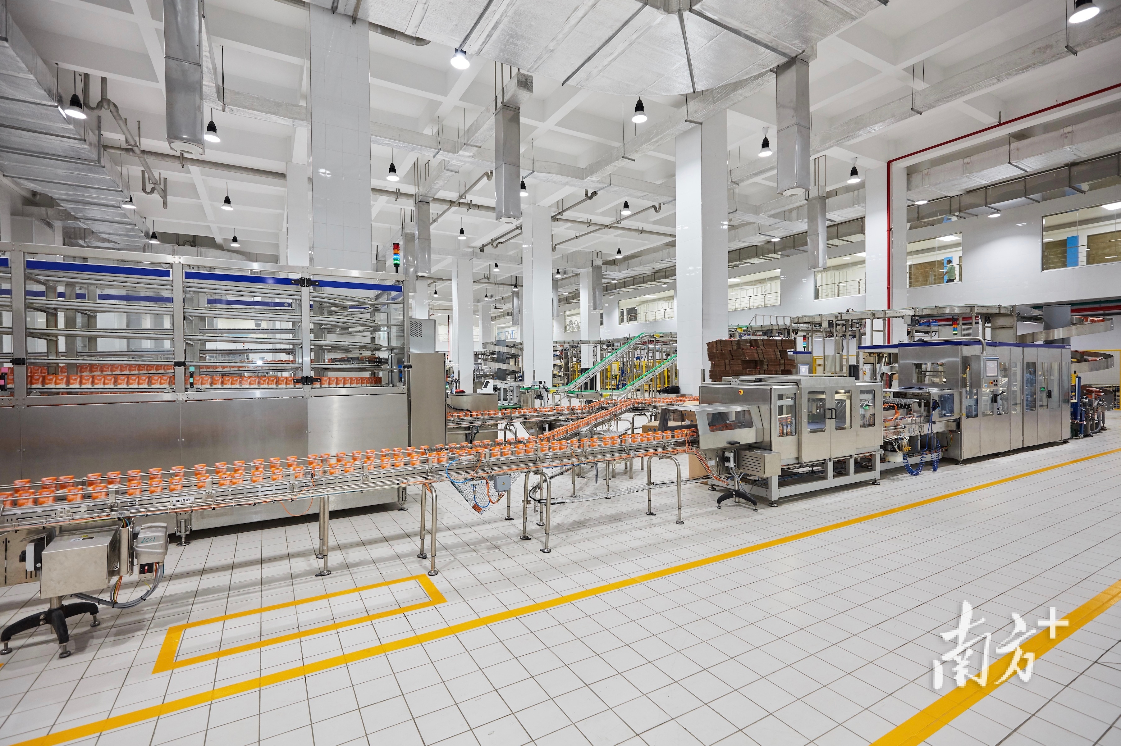 燕塘乳业智能5G工厂自动化常温生产线。