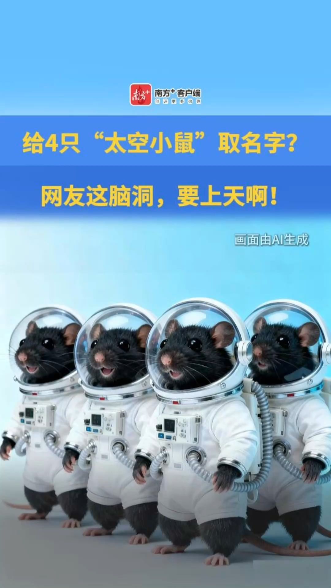 给4只“太空小鼠”取名字?网友这脑洞,要上天啊!