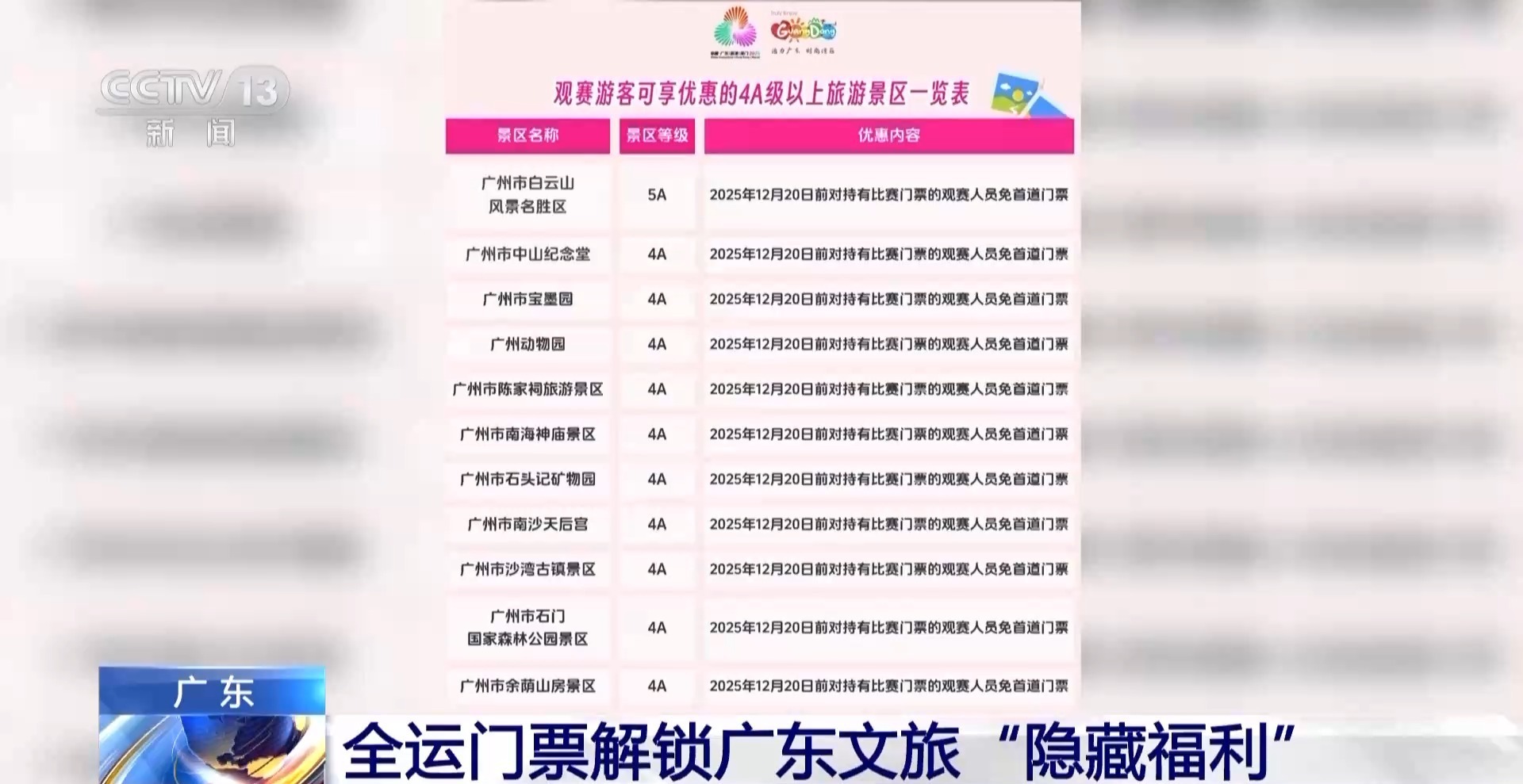 十五运会的各项赛事正在火热进行中。前去观赛的游客和市民,手持各项赛事的门票,可以在广东省内超100家4A级以上景区享受专属折扣福利。此外,不少景区直接凭观赛凭证还可以免费游玩。