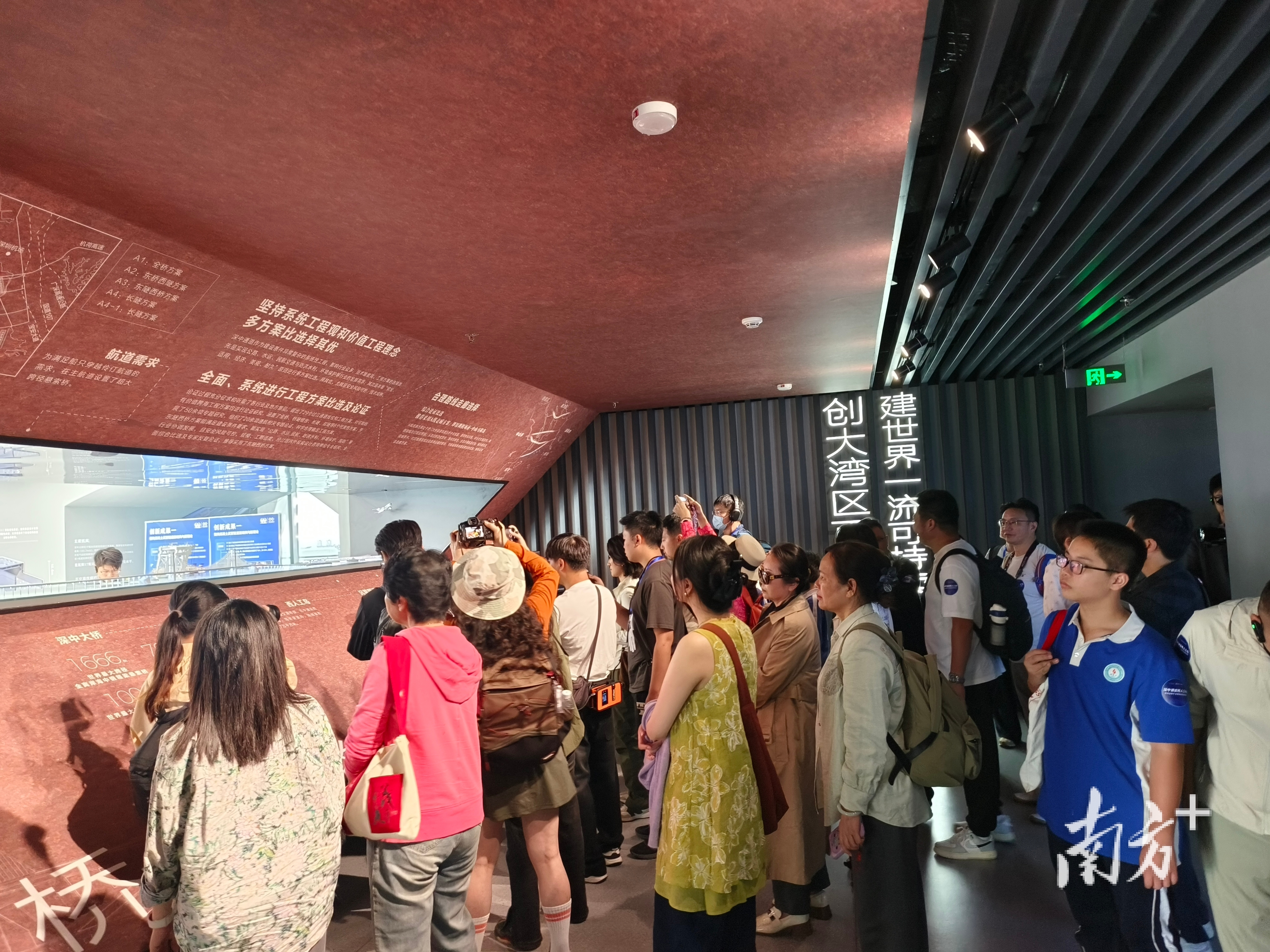 登岛游的核心环节是参观岛上的“粤港澳大湾区跨海通道科普基地”,走进这里,能够全面深入体验超级工程的超级智慧。据了解,科普基地共2200平方米,共两层。第一层(三楼)主要内容是大湾区大通道的发展历程和深中通道的硬核科技,市民可以在这里充分了解深中通道如何通过“十大首创装备和系统”“十项国际领先技术”,攻克九大世界级难题,创造“十项世界之最”。第二层(二楼)主要内容是科普互动区,更适合学生群体通过各种互动游戏了解交通工程,看到海底隧道的“呼吸系统”。此外,在户外展区,市民朋友可以观察、触摸到深中大桥主缆、海底沉管隧道钢壳的实物,与超级工程零距离接触。
