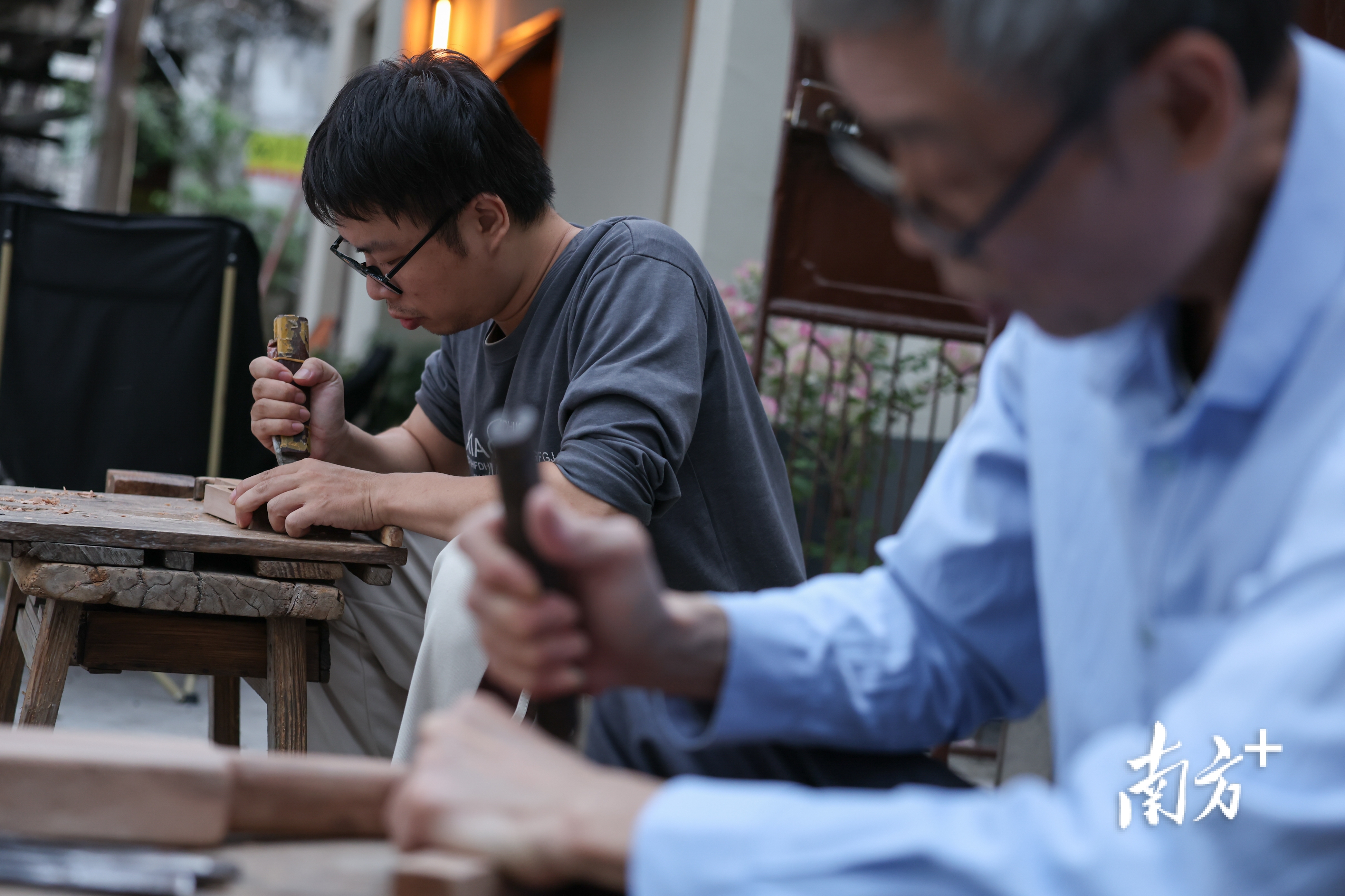如今,许丽明每天仍会花几个小时与儿子一同伏案雕琢。凿木声声,从韩江边传出,如同不曾间断的纽带,连接着家族的过去与未来,也连通了海内外潮人的乡情。