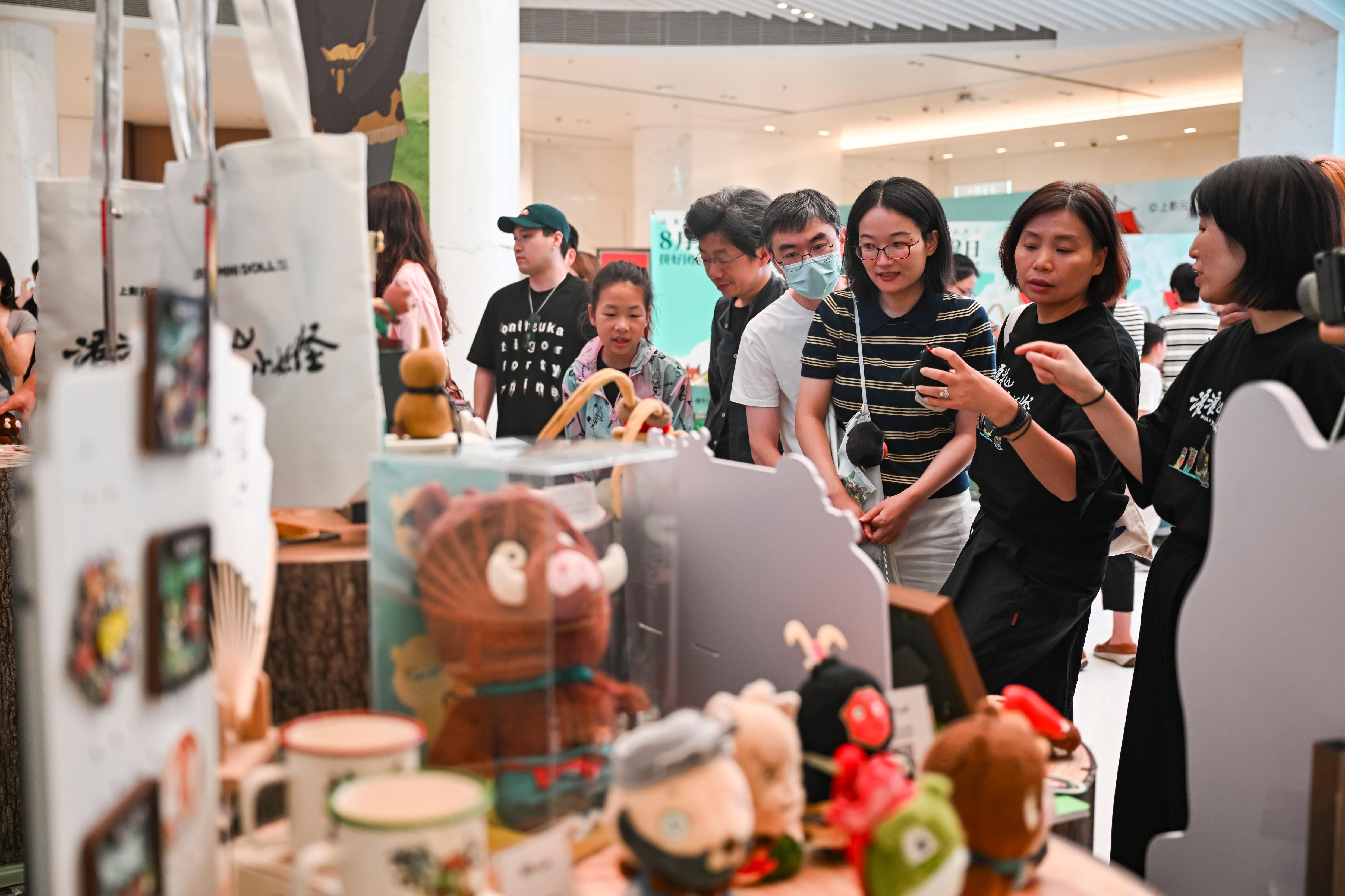 影迷在《浪浪山小妖怪》电影首映活动现场浏览电影周边产品。图片来源:新华社