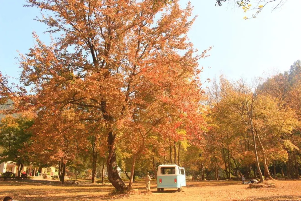 在这里,古枫、古樟、古银杏并肩而立,它们历经沧桑的树干与绚烂的秋叶形成震撼对比,每棵珍稀树木都挂有介绍牌,你可以一边赏秋一边学习植物知识。