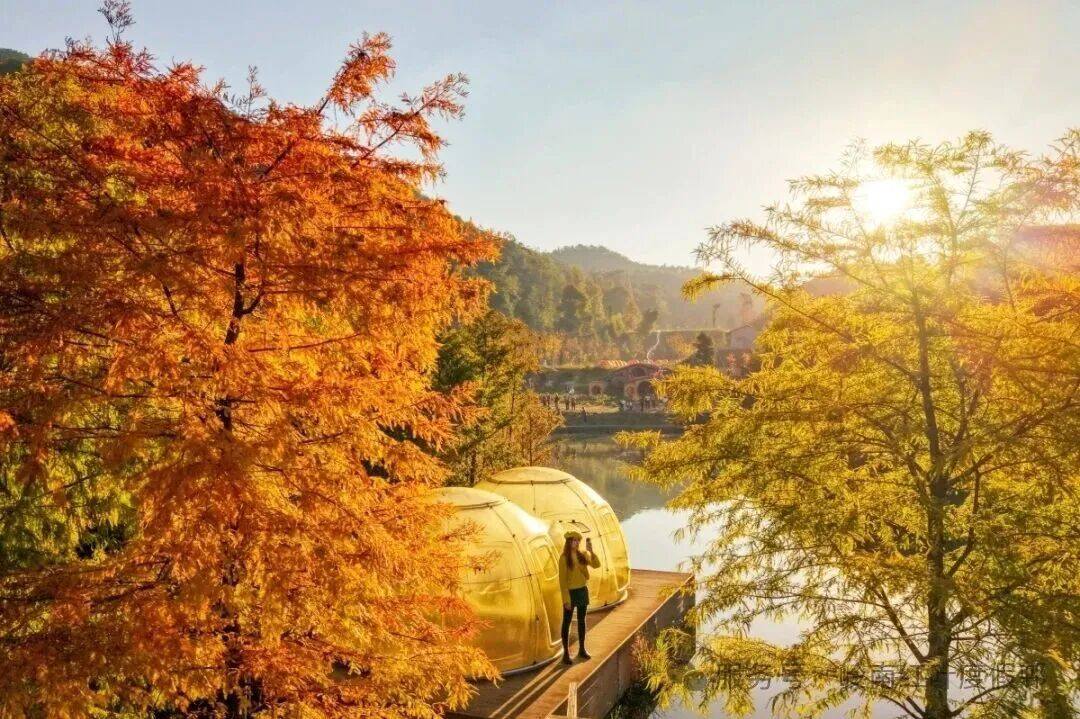 傍晚时分,部分枫林区亮起暖黄色灯光,红叶在光影中呈现出梦幻质感。喜欢看这里的风景,可以在这里过夜,夜晚仰望星空,清晨在鸟鸣与晨雾中醒来,感受被红叶包围的诗意栖居。