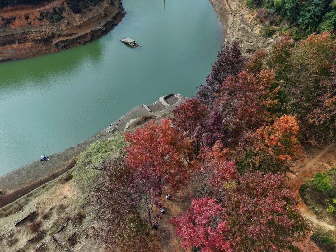 冬日时节,始兴县马市镇岭头村因一片湖畔红枫林悄然走红。