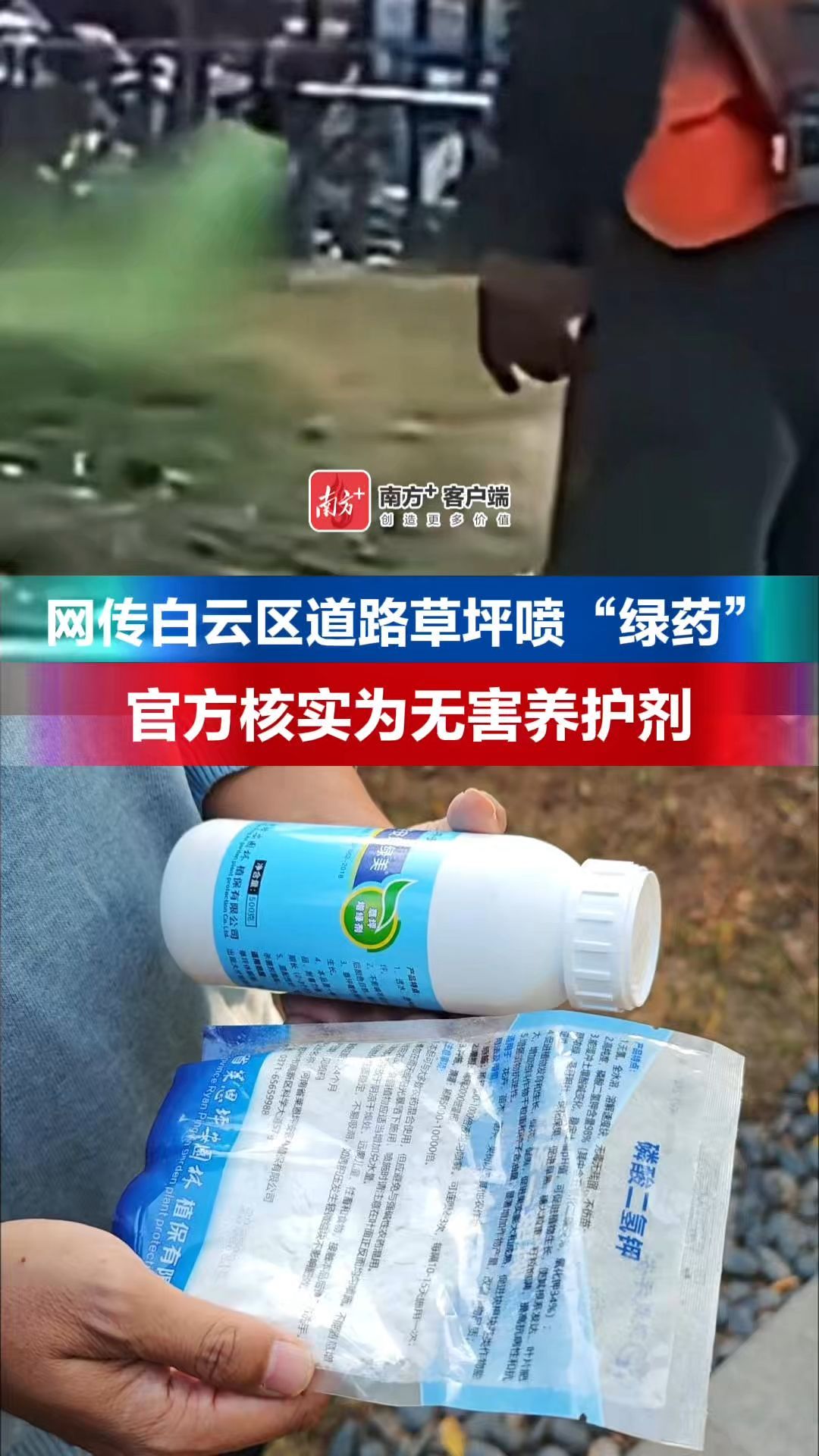 网传白云区道路草坪喷“绿药”,官方核实为无害养护剂