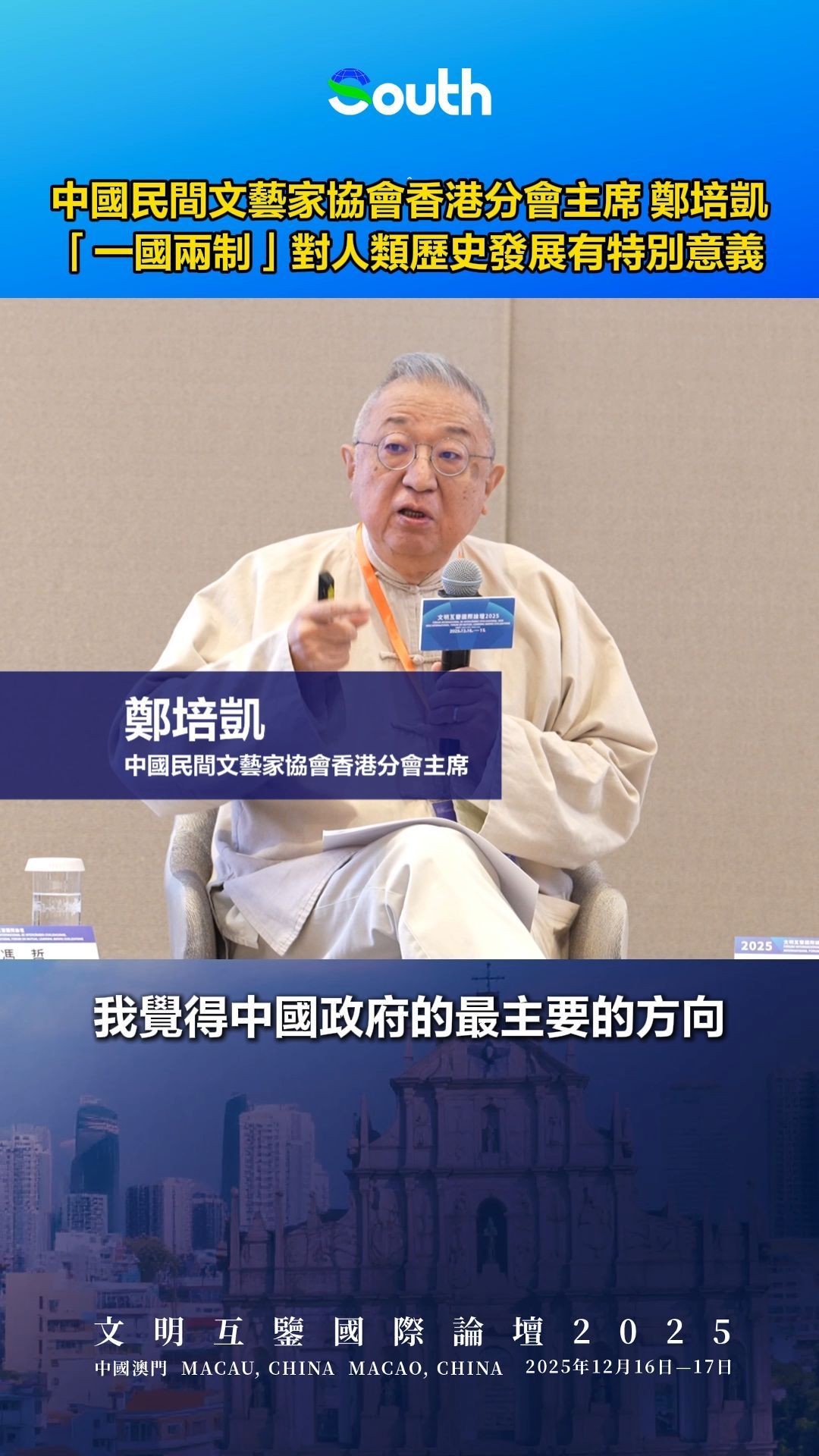 中国民间文艺家协会香港分会主席郑培凯:“一国两制”对人类历史发展有特别意义
