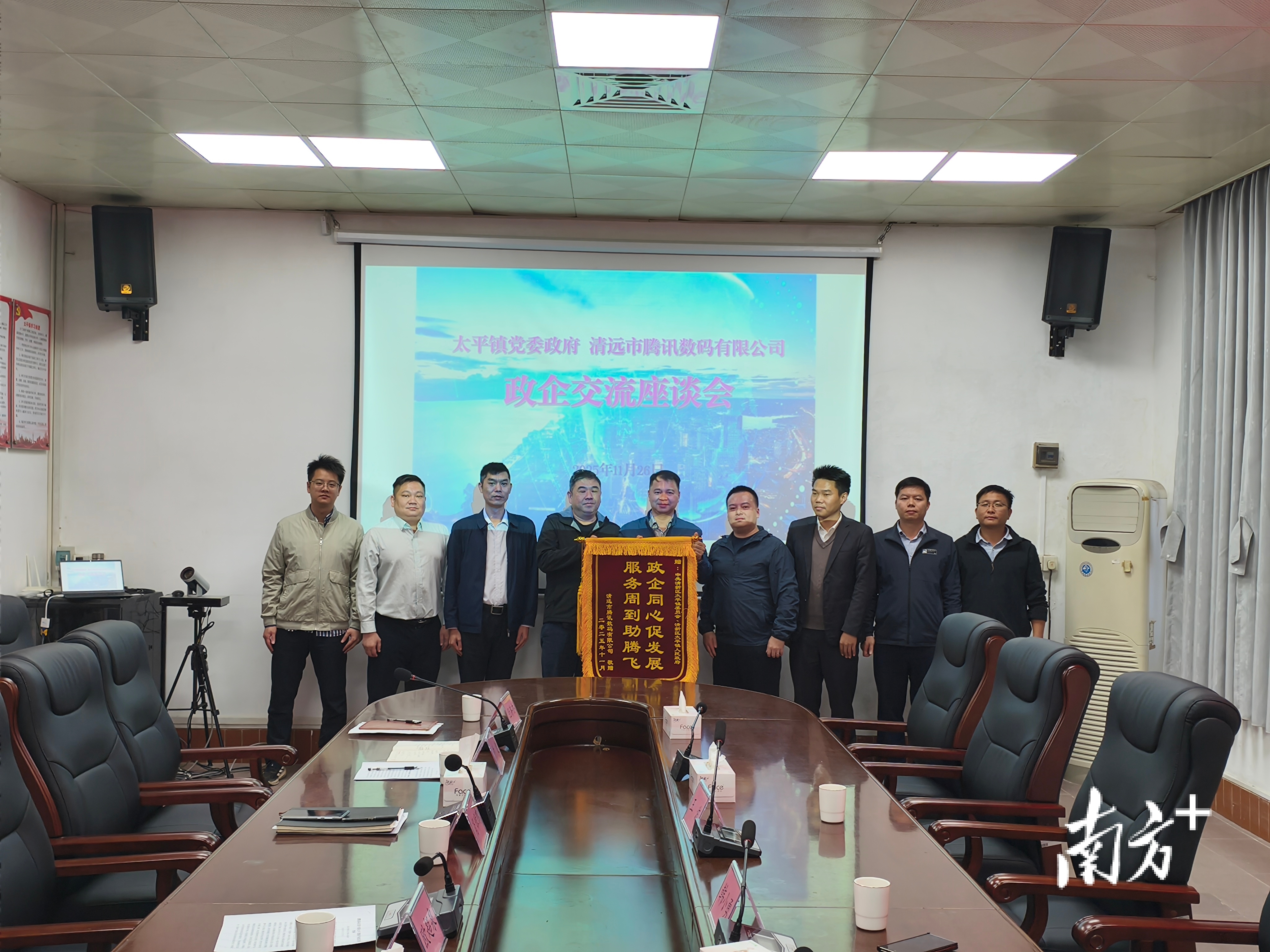“高效服务解难题,营商环境暖企心!”11月26日,腾讯清远清新云计算数据中心项目相关负责人将一面镌刻着“政企同心促发展 服务周到助腾飞”的锦旗送至清新区太平镇人民政府,以此感谢镇党委、政府在项目建设过程中提供的全方位支持与精准服务。这面锦旗不仅是企业对太平镇政务服务的肯定,更是该镇持续优化营商环境、助力数字产业发展的生动写照。