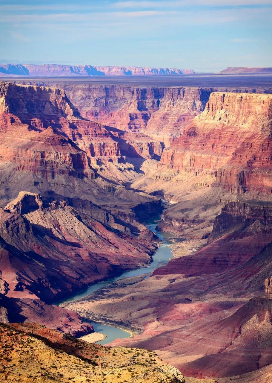 而流经此处的科罗拉多河“一刀切开”了这块蛋糕——几千万年间,科罗拉多河的激流不停息地冲刷着它,在一片高原上雕刻出一道巨大的鸿沟,并赋予它光怪陆离的形态。