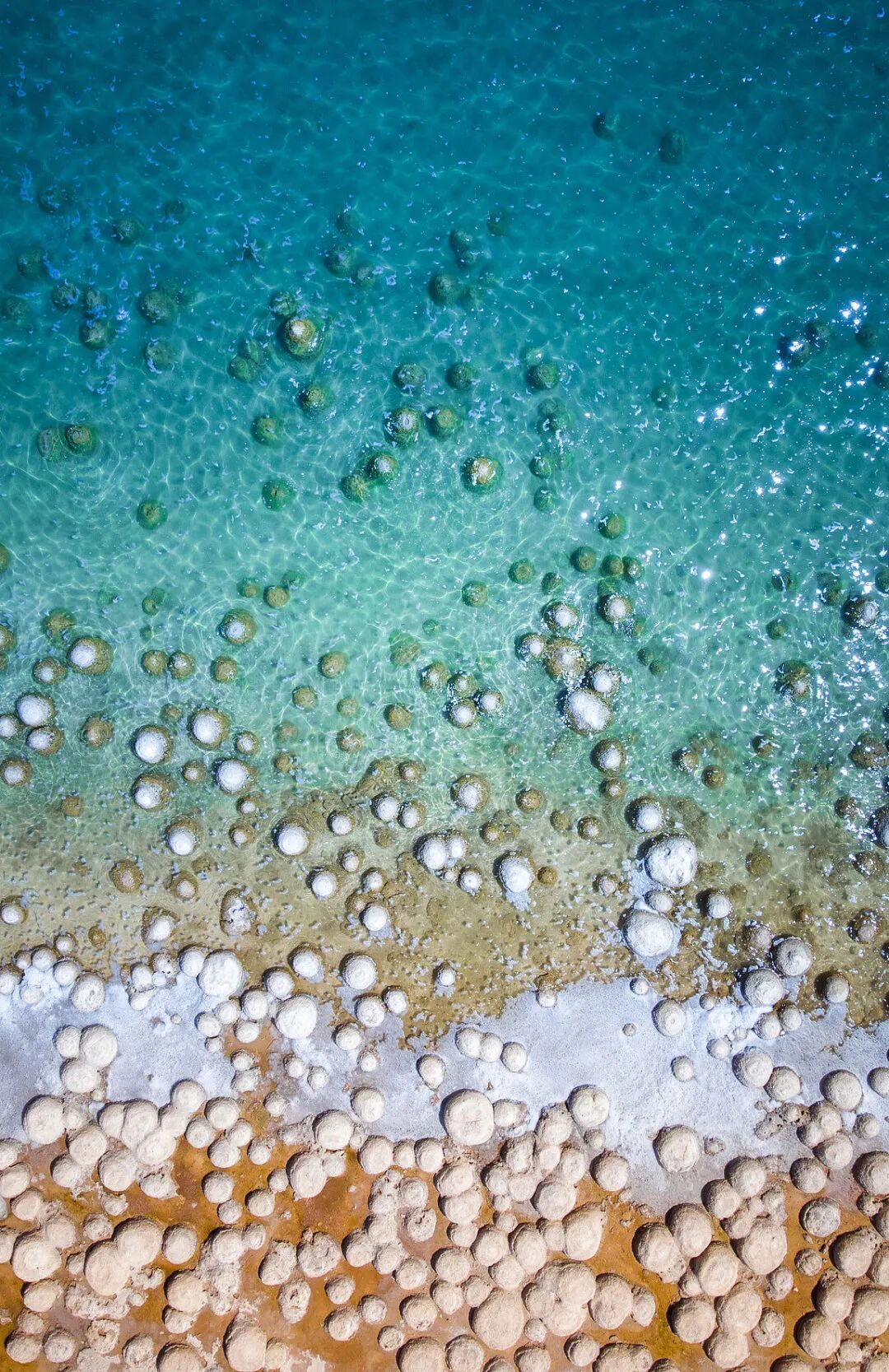 在极少数地方还有活着的叠层石,澳大利亚哈默林池就是其中最著名的一处。