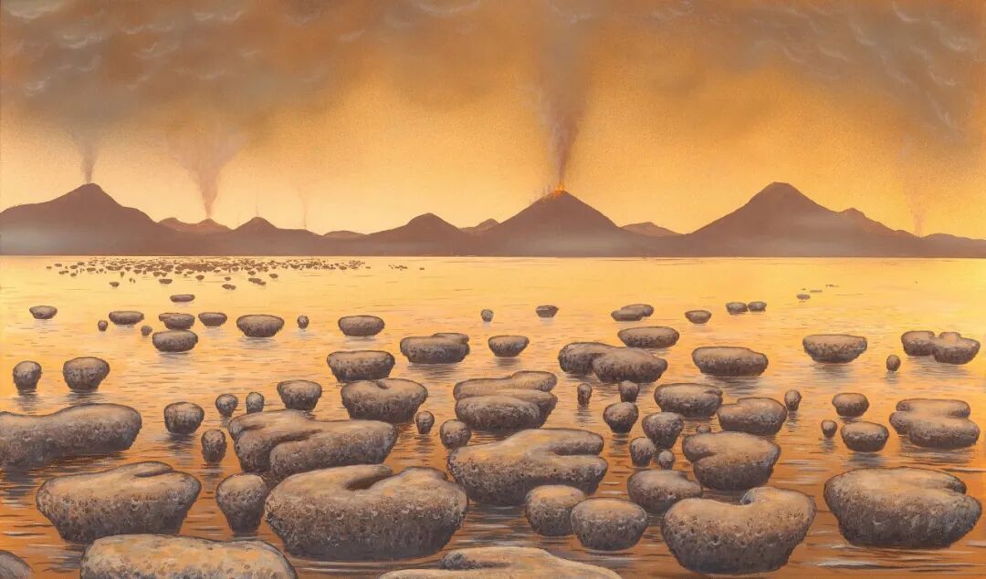 37亿—35亿年前的地球,天地之间充满了浑浊的气体,暗淡的阳光几乎无法照射到地面上。此时的大气中是没有氧气的,这些原初生命也是适应这种厌氧环境的原始细菌。