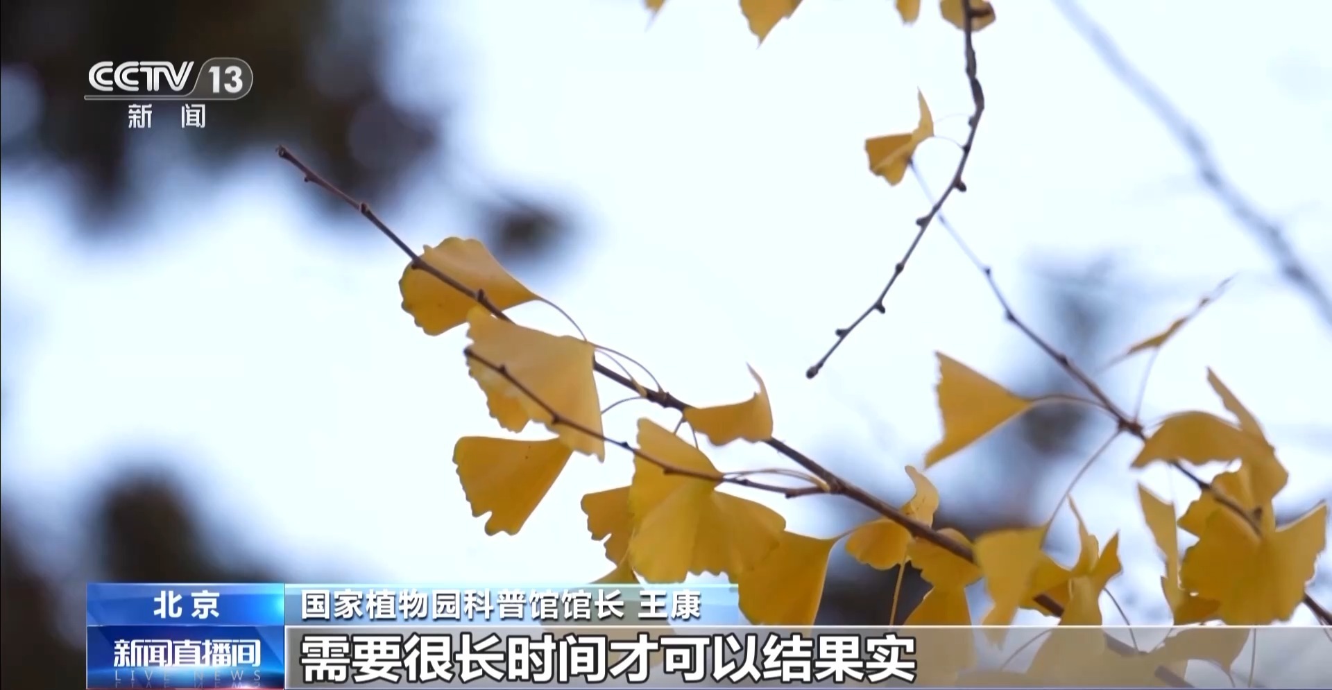 国家植物园科普馆馆长 王康:银杏在历史长河当中的地位是非常悠久的,很多它的近缘物种在这个地球上已经消失了,它的科学价值很高。