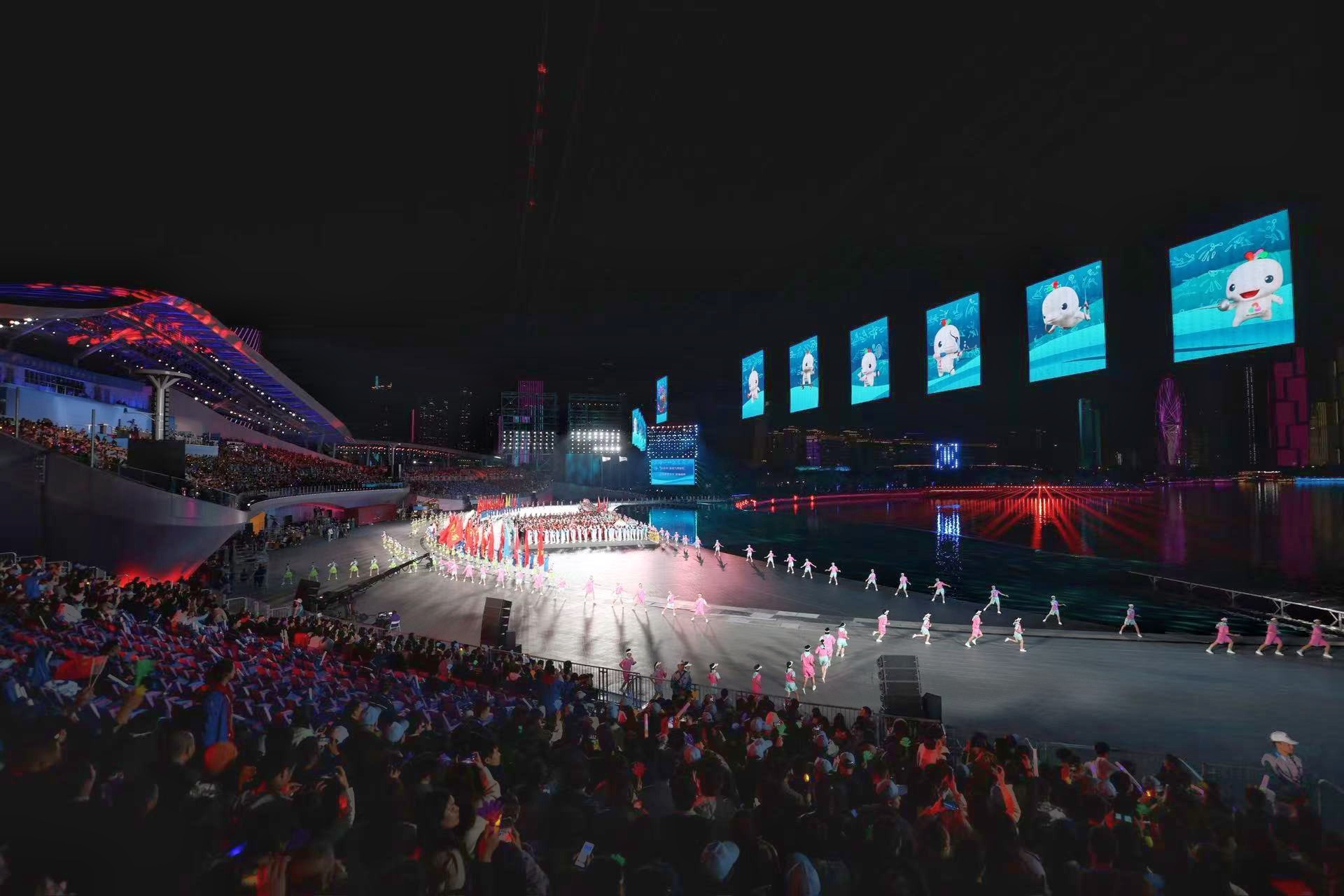 11月21日晚,十五运会闭幕式暖场表演现场。