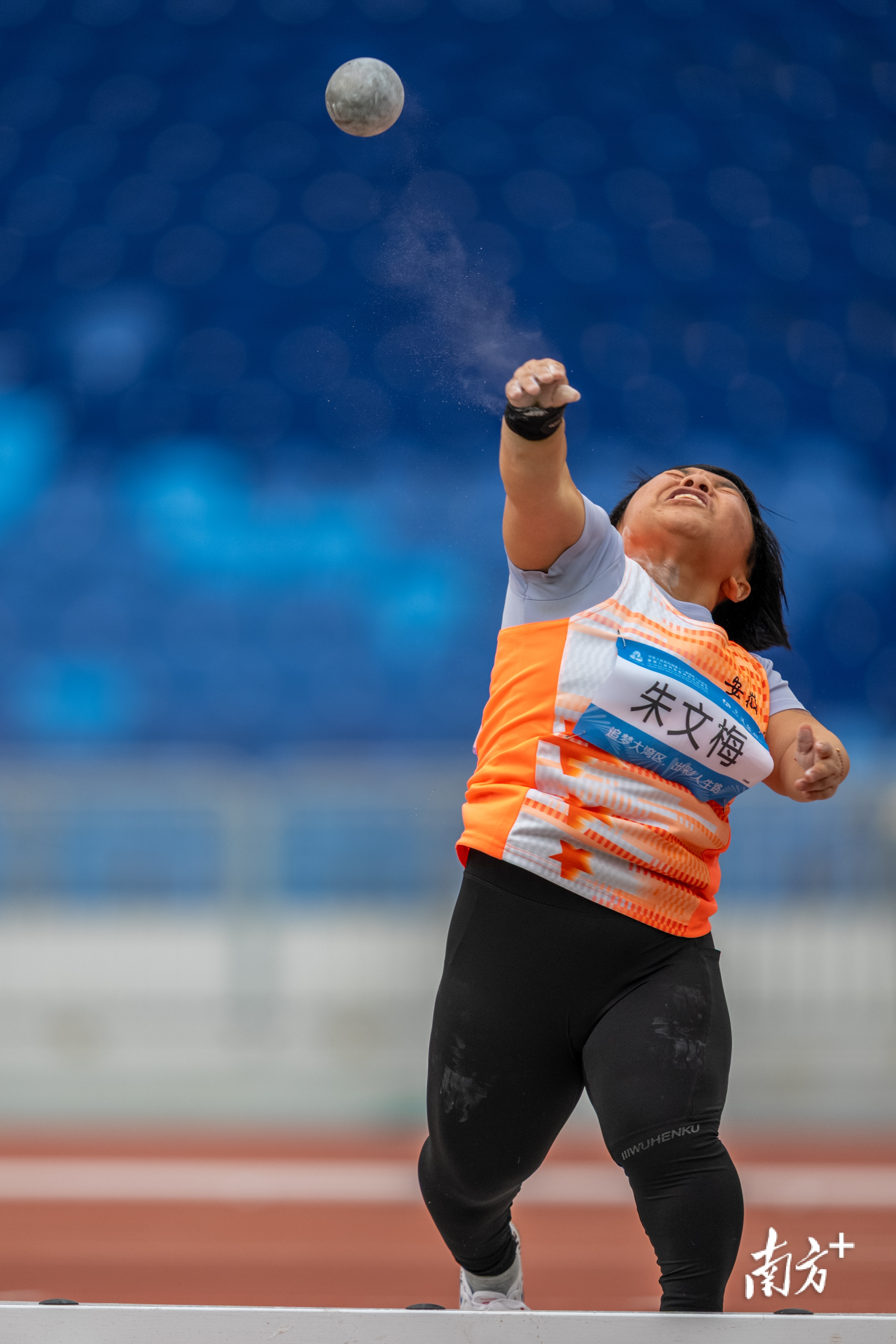 12月12日下午,田径女子铅球F40级决赛,安徽队朱文梅奋力掷出铅球。姚志豪 摄