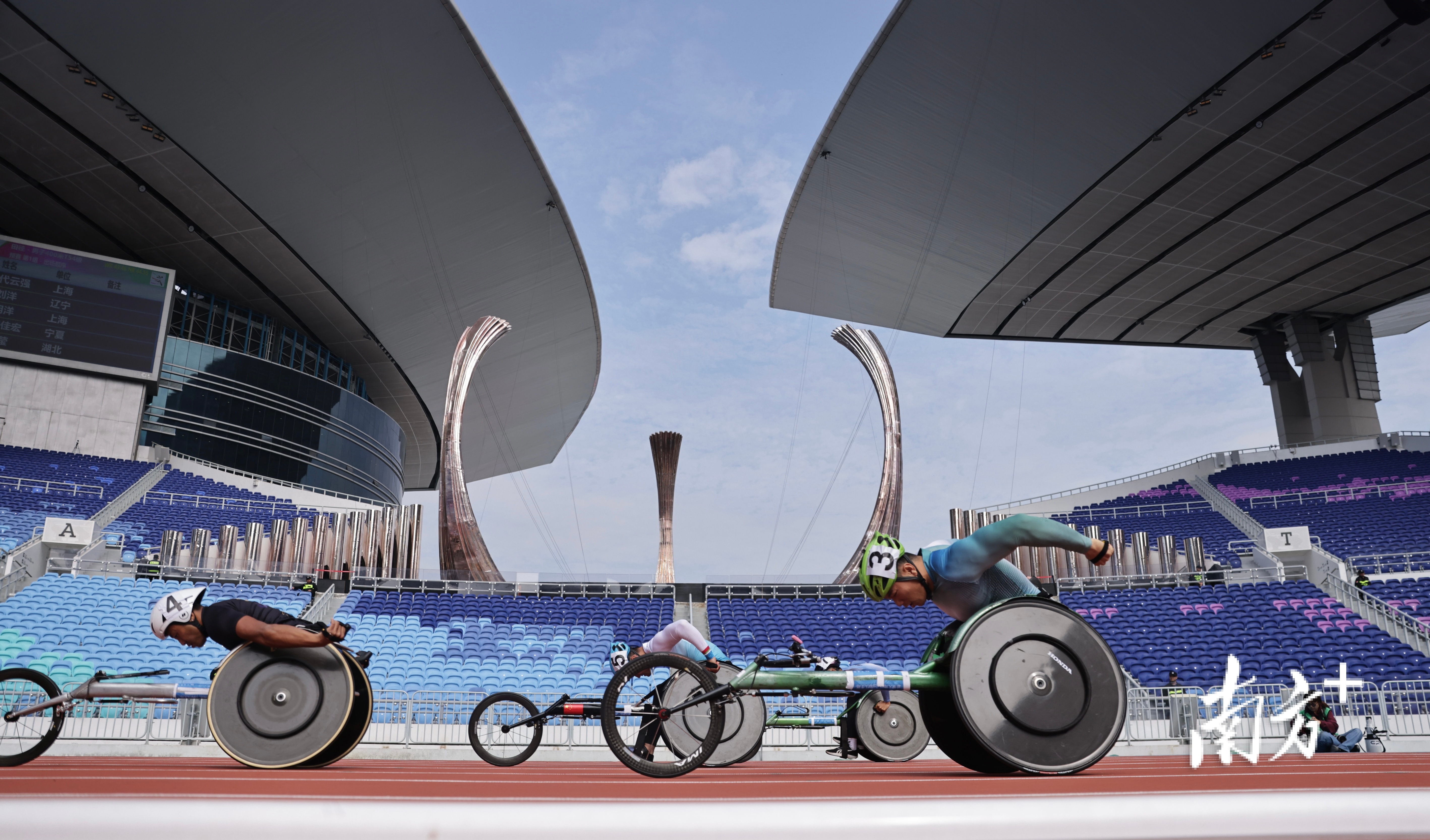 12月12日,男子400米T54级预赛,运动员在比赛中。吴明 摄