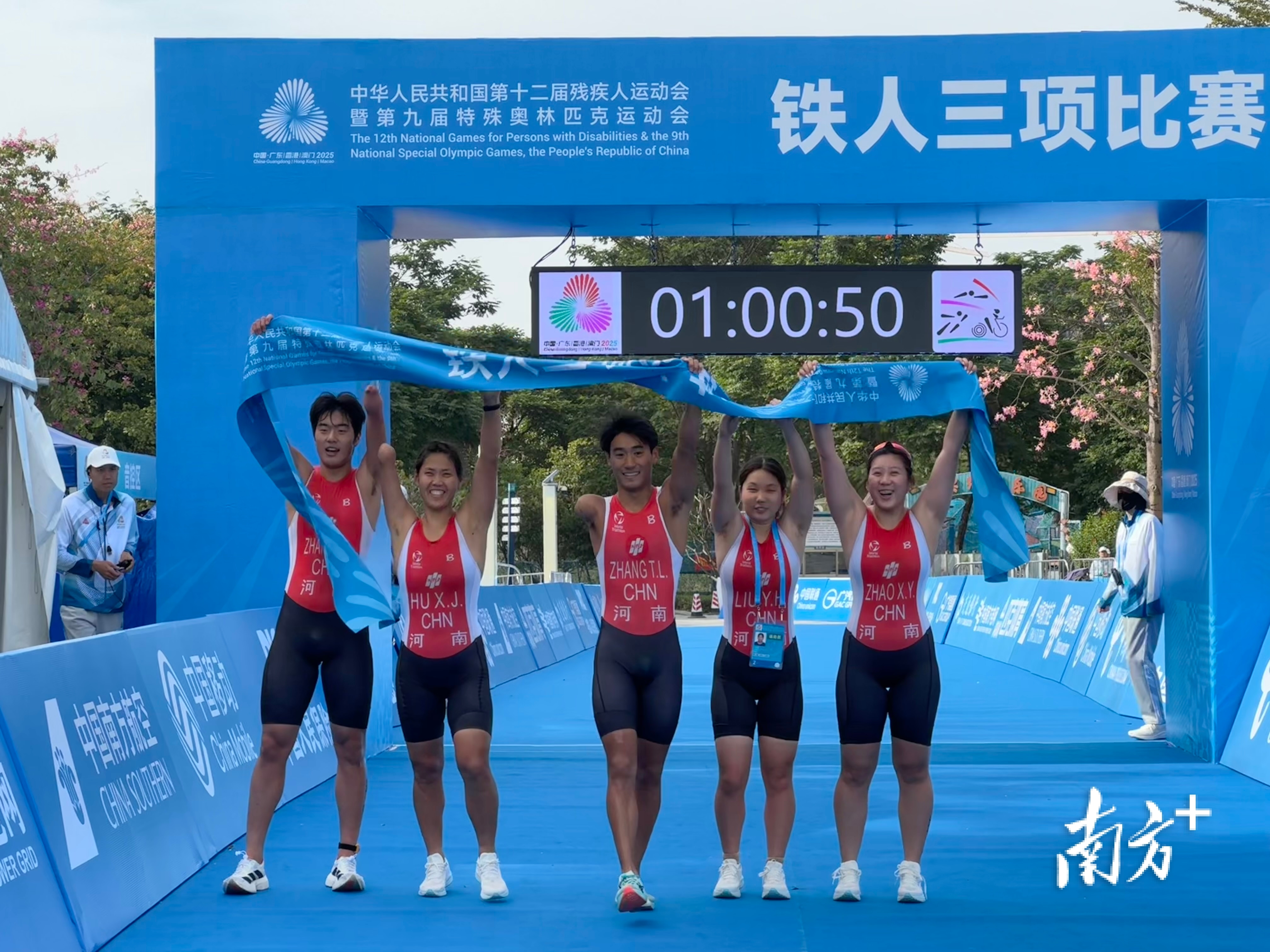 本届残特奥会铁人三项赛事,广东队阵容强大,共派出60人参赛。运动员们展现出自强不息、顽强拼搏的精神,在男女子多组别的视力、肢体、轮椅项目均斩获金牌,成为赛场上一道亮丽的风景。