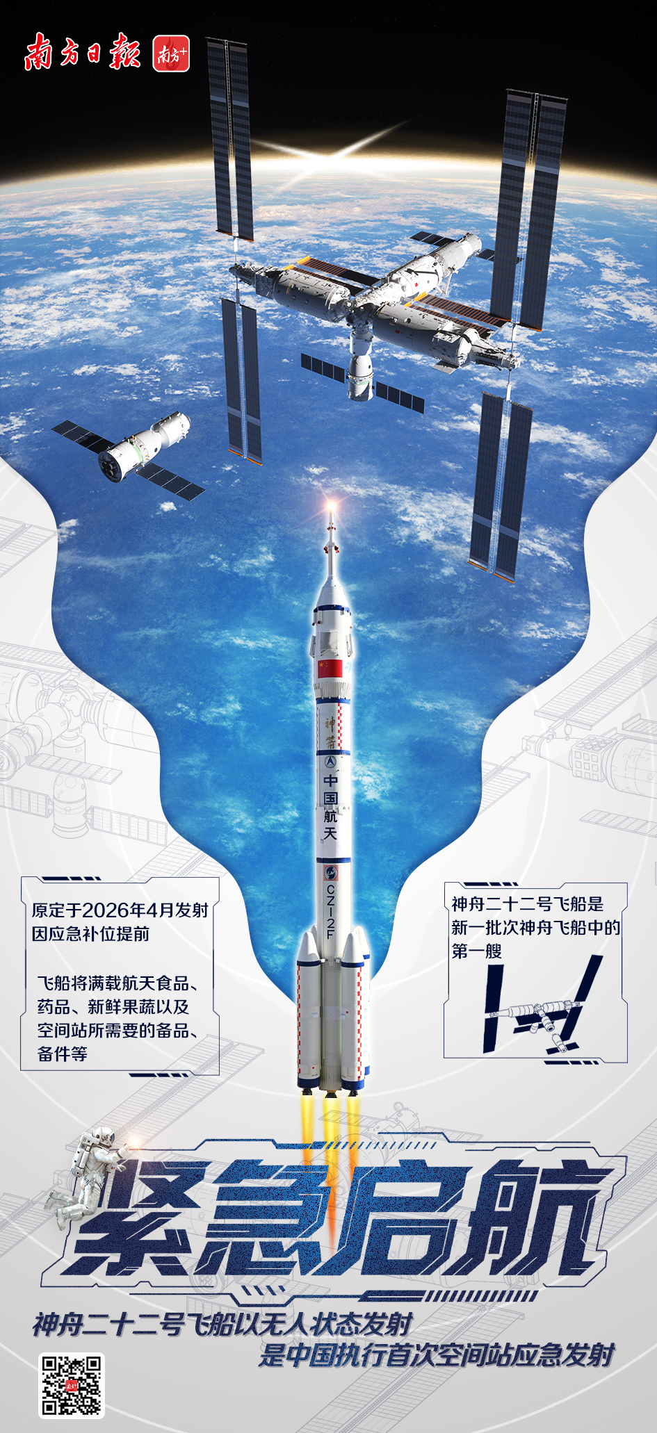 本次神舟二十二号任务启用了16天应急发射方案。空间站建造运行以来,中国载人航天确立了“发一备一”机制,即每一艘载人飞船发射升空执行任务时,下一艘飞船即进入应急救援待命状态。