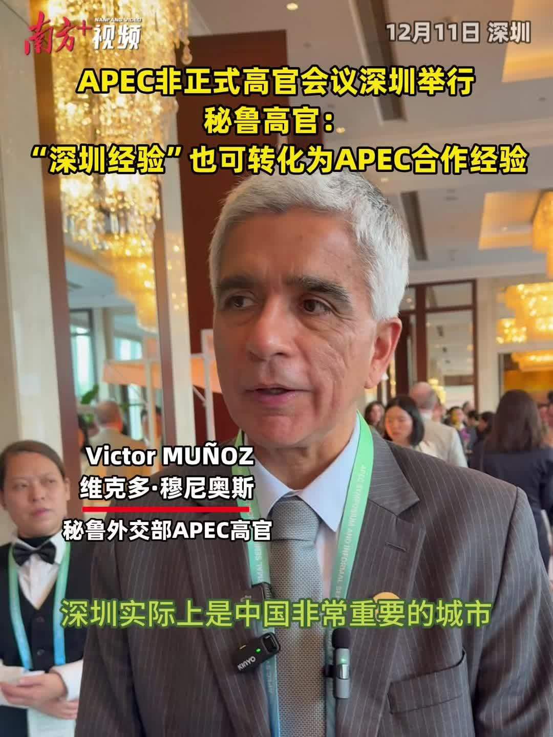 会议期间,秘鲁外交部APEC高官Victor MUÑOZ(维克多·穆尼奥斯)接受南方+、South记者采访时表示,“深圳经验”也可转化为APEC合作经验 。
