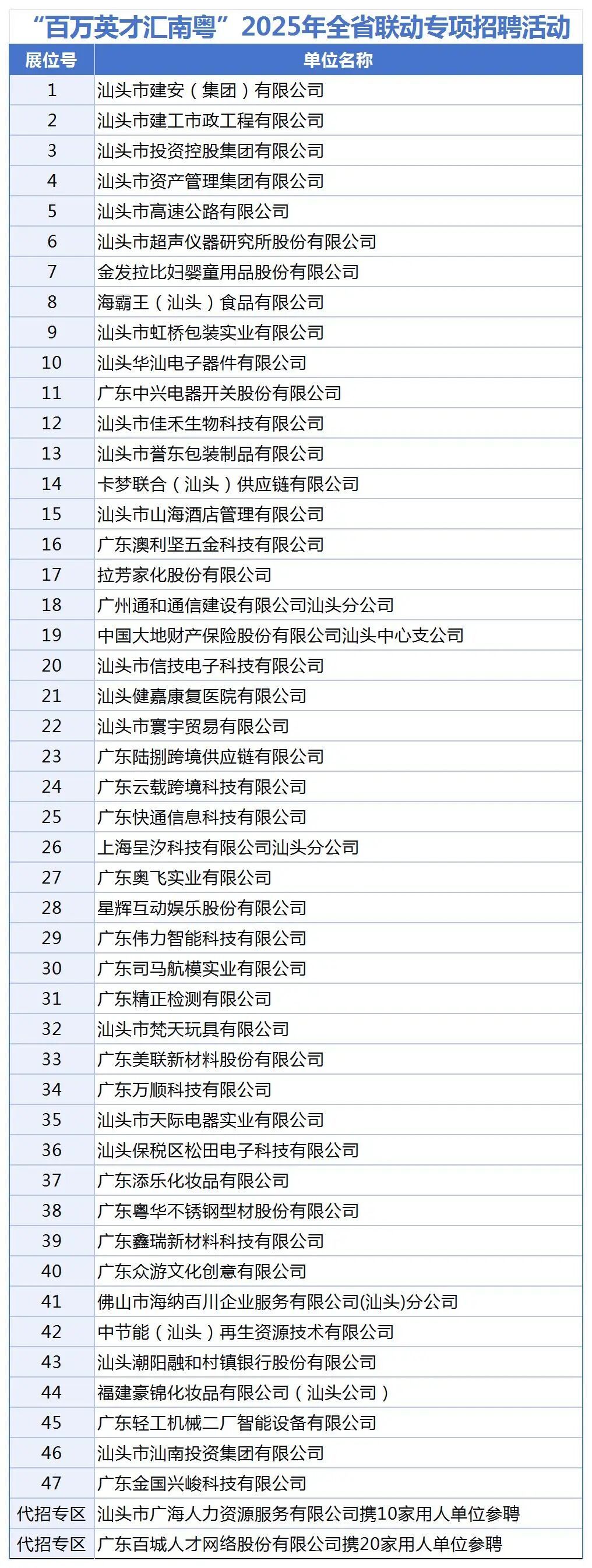 “百万英才汇南粤”2025年全省联动专项招聘活动(汕头专场)