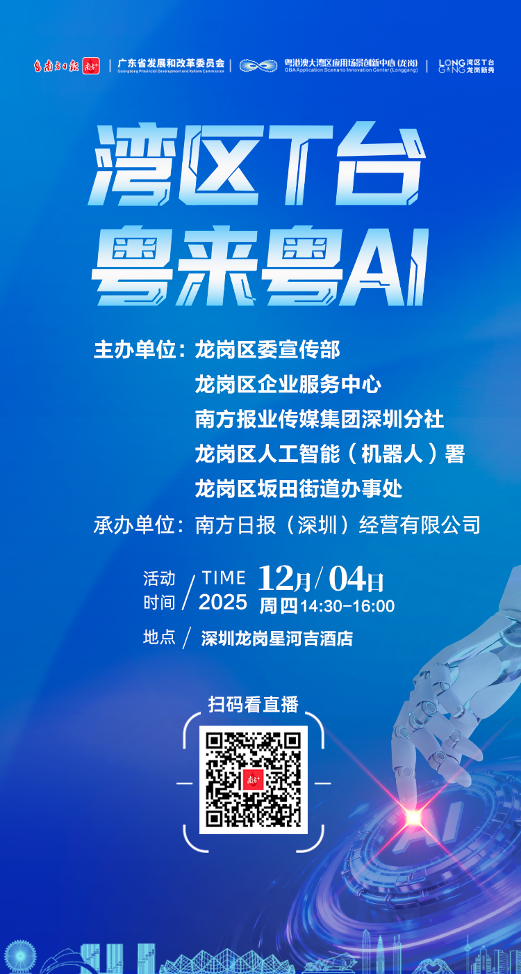 12月4日,“岭航场景 粤进未来”2025广东省人工智能与机器人应用场景创新大会将于深圳龙岗坂田星河吉酒店举行。