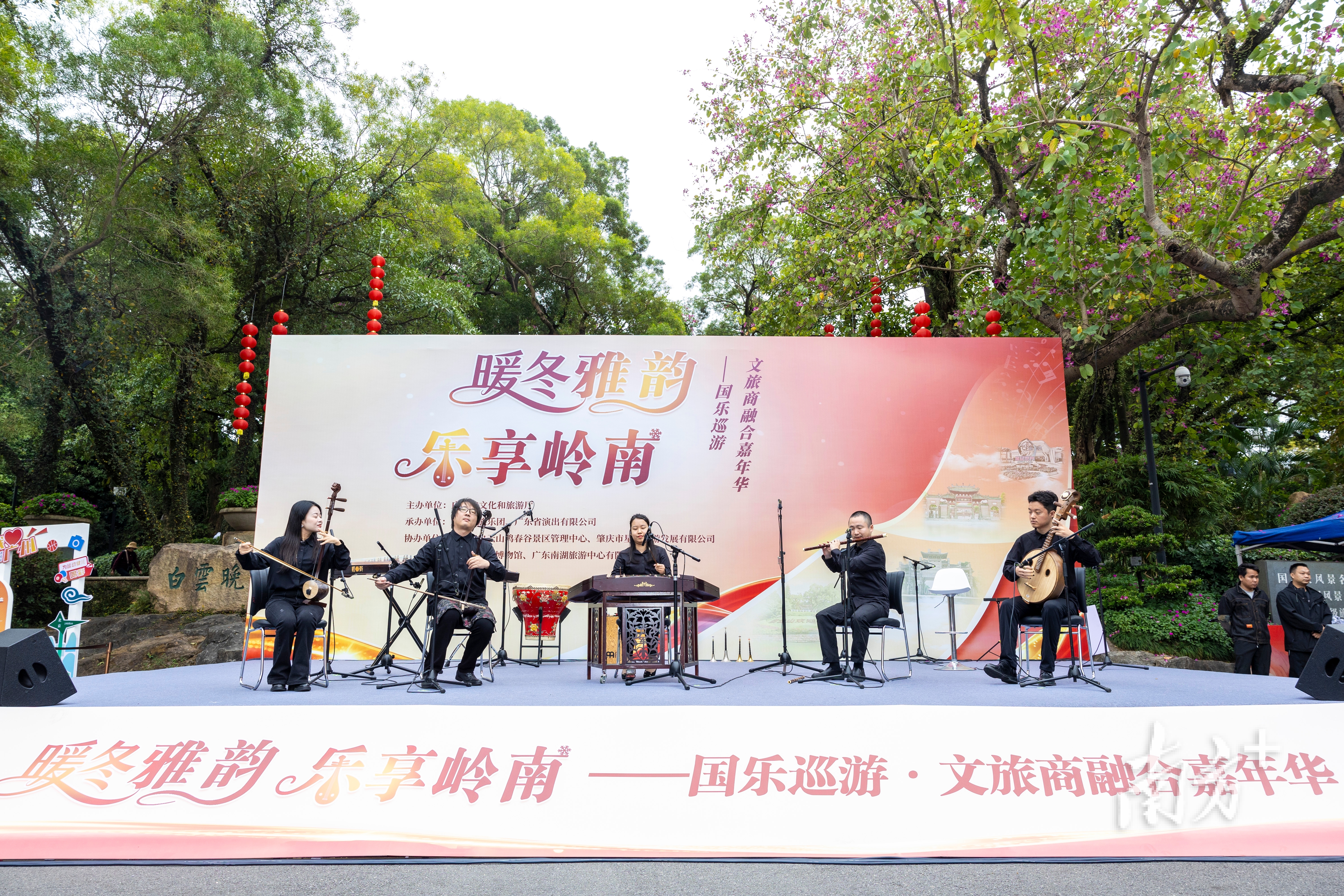 听国乐,游广东,享暖冬!近日,由广东省文化和旅游厅主办,广东民族乐团、广东省演出有限公司承办的“暖冬雅韵,乐享岭南”——国乐巡游·文旅商融合嘉年华在白云山山顶公园正式启动。据了解,该活动持续至2026年1月上旬,将有多达54场嘉年华以白云山为核心主场,辐射佛山、肇庆等粤港澳大湾区城市,弘扬国乐文化的同时,打造文旅融合的消费新场景。