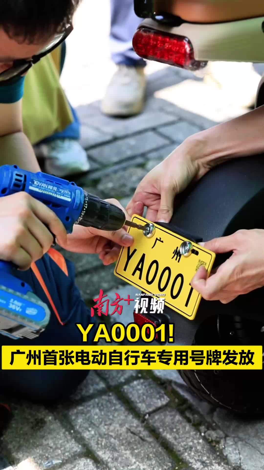 据介绍,“广州Y”号段用于邮政、快递、报刊投递、瓶装燃气行业车辆,这张YA0001号牌归属于某邮政快递企业,企业负责人李女士介绍,上周得知相关新规后,便立即向行业主管部门提交了申请,没想到能够申请到全市首张号牌,感到非常荣幸。未来,企业会带头落实专用号牌管理,带动行业安全规范使用电动自行车。