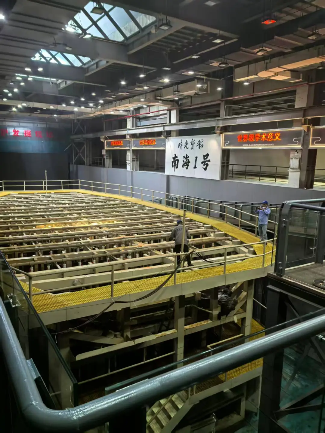 站在沉箱拆除后的参观廊道上