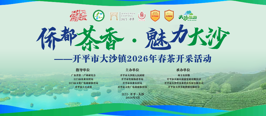 春茶吐绿,开采正当时。3月27日,“侨都茶香·魅力大沙”开平市大沙镇2026年春茶开采活动将在大沙里·欢茶谷启幕。活动将持续至3月29日,现场将见证“开春第一采”的热闹场景,市民游客还能沉浸式感受踏青休闲的茶旅体验。