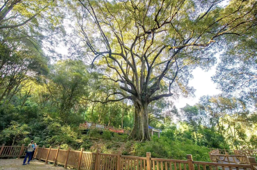 穿过蓝钟圩镇,沿着岳山路往山林深处前行,便走进一片清幽秘境。红锥王古树公园内,那棵千年红锥王静静伫立,虬枝苍劲,冠盖如云。林间小径幽深,苔痕点点,新发嫩叶在阳光下泛着油亮光泽。驻足树下,深吸一口气,满是草木清甜。