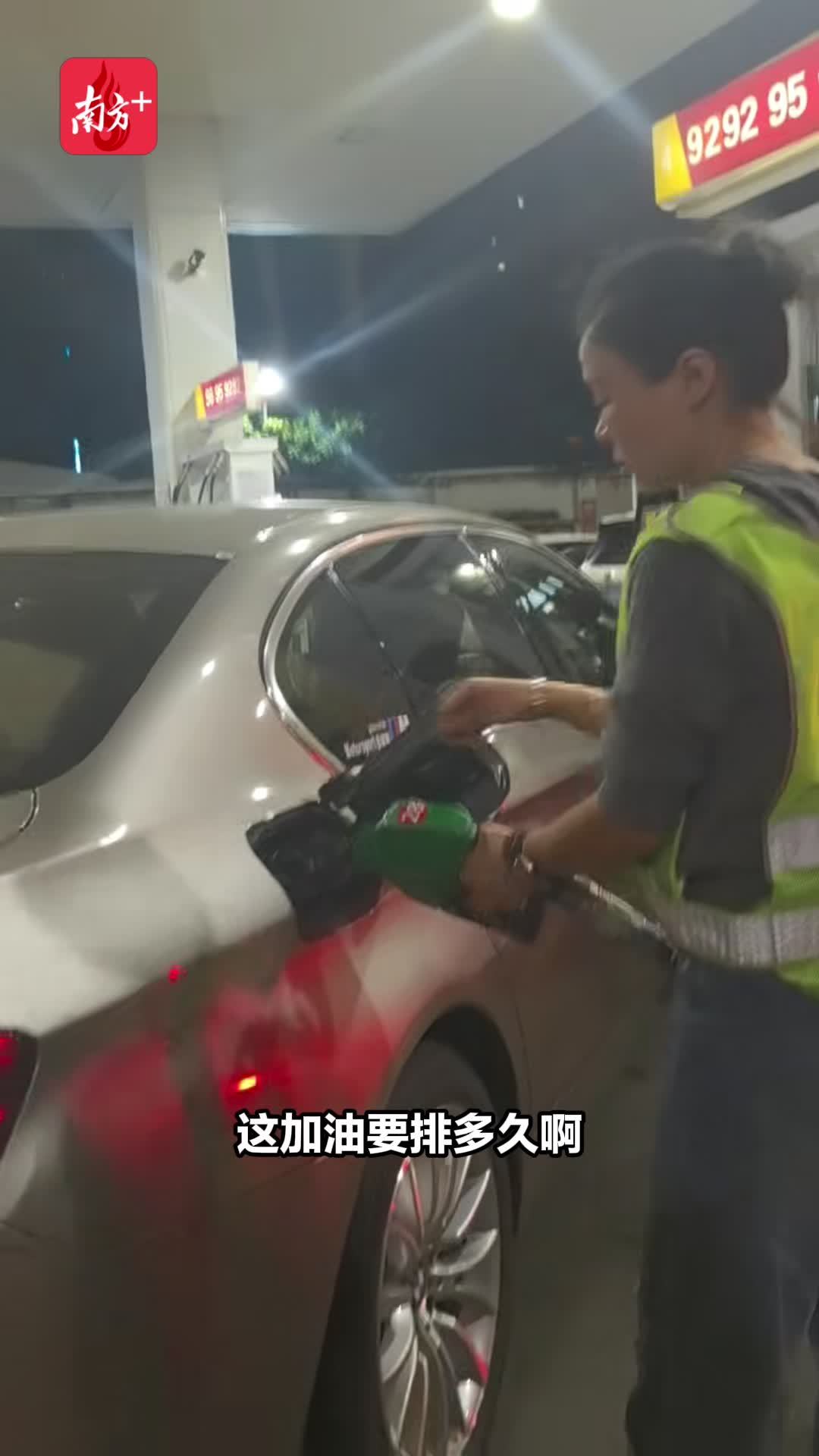 22日,南方+记者看到广州、中山多个加油站出现排队加油的场景。有车主表示,“排队需要差不多1小时。”