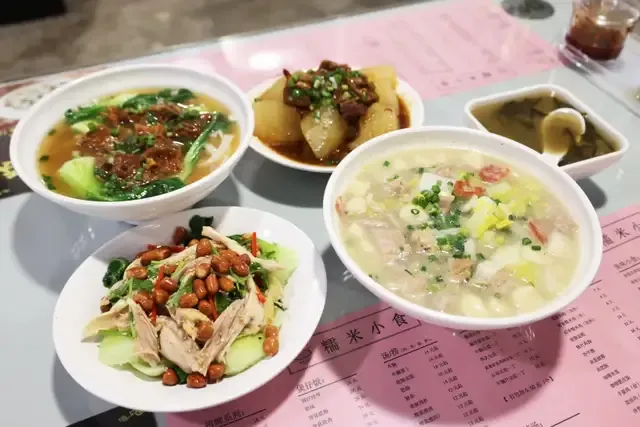 必吃菜品:麻辣云吞、杏仁豆腐、糯米饭、猪杂汤