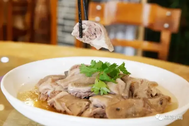 比如入选石碣十大名菜的「招牌咸水鹅」,就选用清远山区放养黑棕鹅,由十多种香料和古井碘盐水浸泡而成,皮滑肉香,让人垂涎三尺。