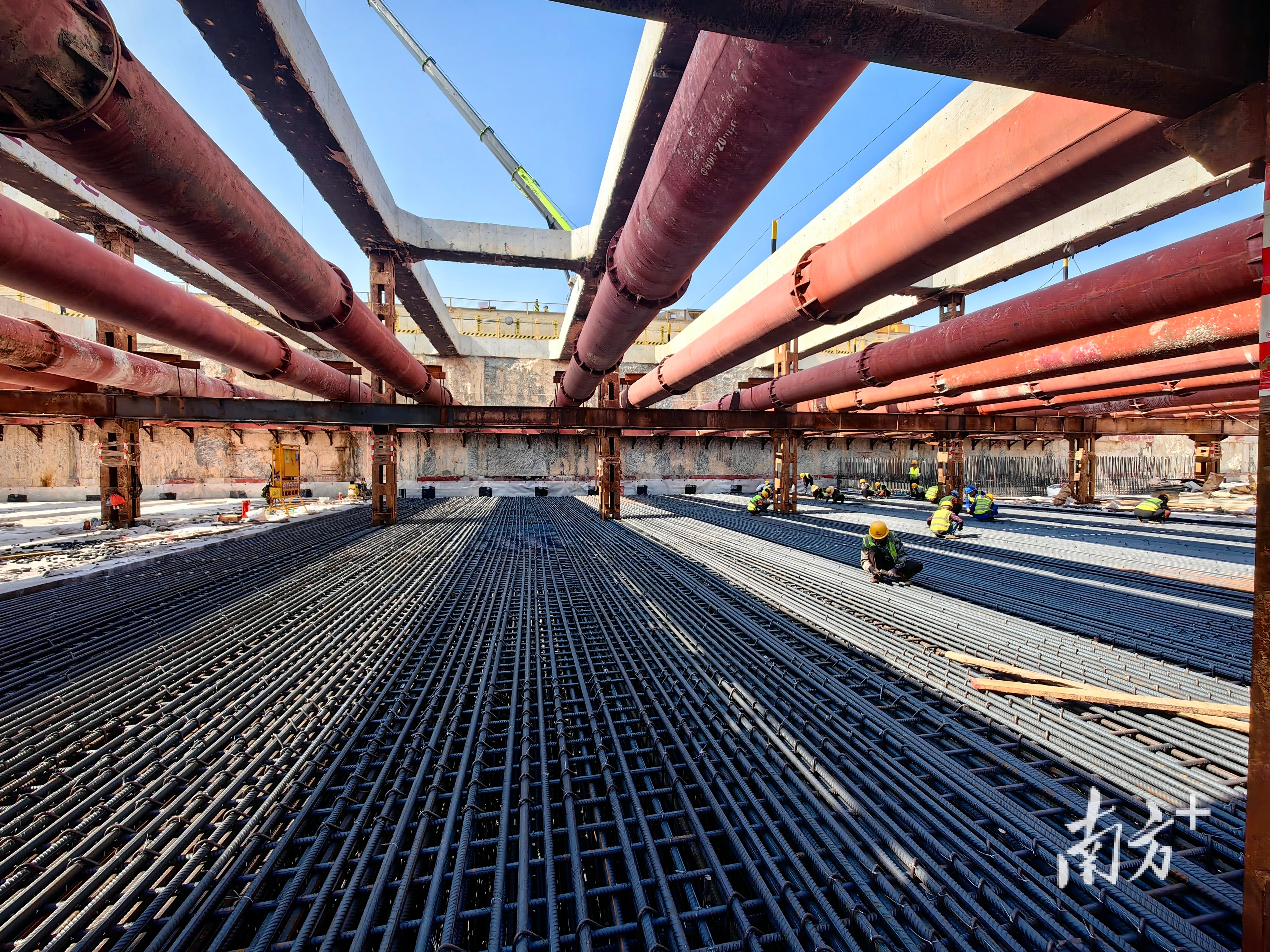 此次封顶的2号基坑地处建设条件极为复杂的深圳宝安国际机场附近,体量庞大、技术难度极高。基坑全长285米,最宽处超51米,开挖深度达26.64米,犹如一个精心构筑的“地下迷宫”,总浇筑混凝土方量达1570立方米。其施工安全、质量与进度,直接关系到深江铁路全线建设的推进。